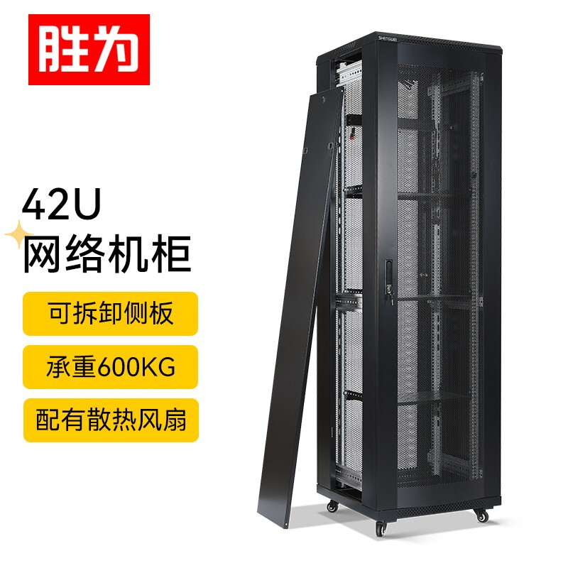 網(wǎng)絡機柜42U 加厚網(wǎng)絡服務器機柜 壁掛監(jiān)控弱電交換機柜圓弧網(wǎng)孔門 黑色 CJG4266G