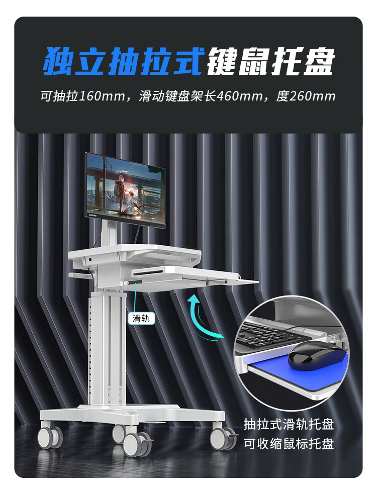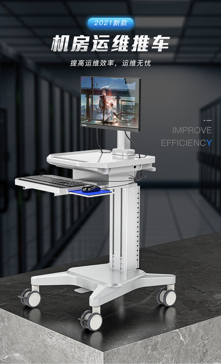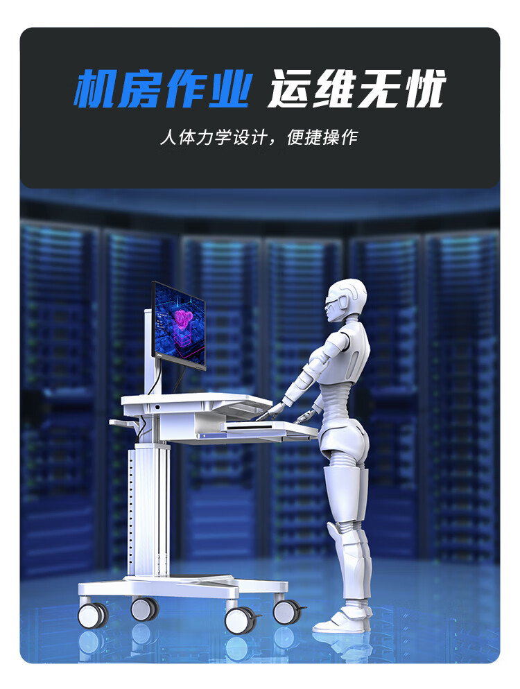 機(jī)房運(yùn)維推車KVM移動操作臺 運(yùn)維工作小推車 電腦顯示器鍵鼠套裝操作工作臺一體式移動機(jī)房推車 DJF0005J