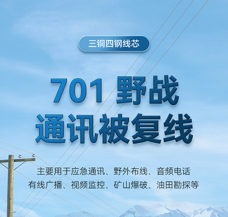 野戰(zhàn)通訊被復(fù)線 地質(zhì)勘探線701三銅四鋼背負(fù)線 7*0.25mm雙絞監(jiān)控視頻野外輕型電話線500米 CBF0701G