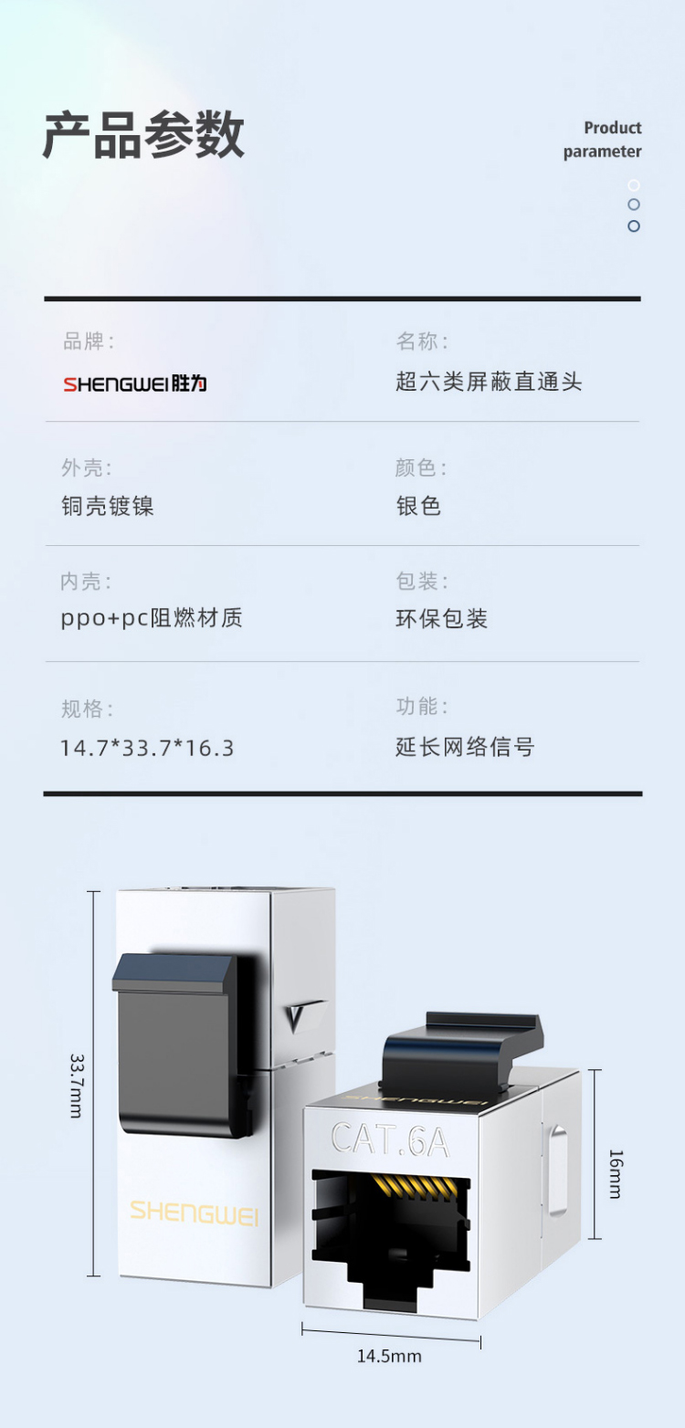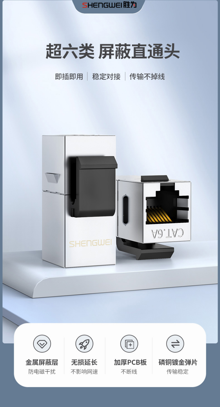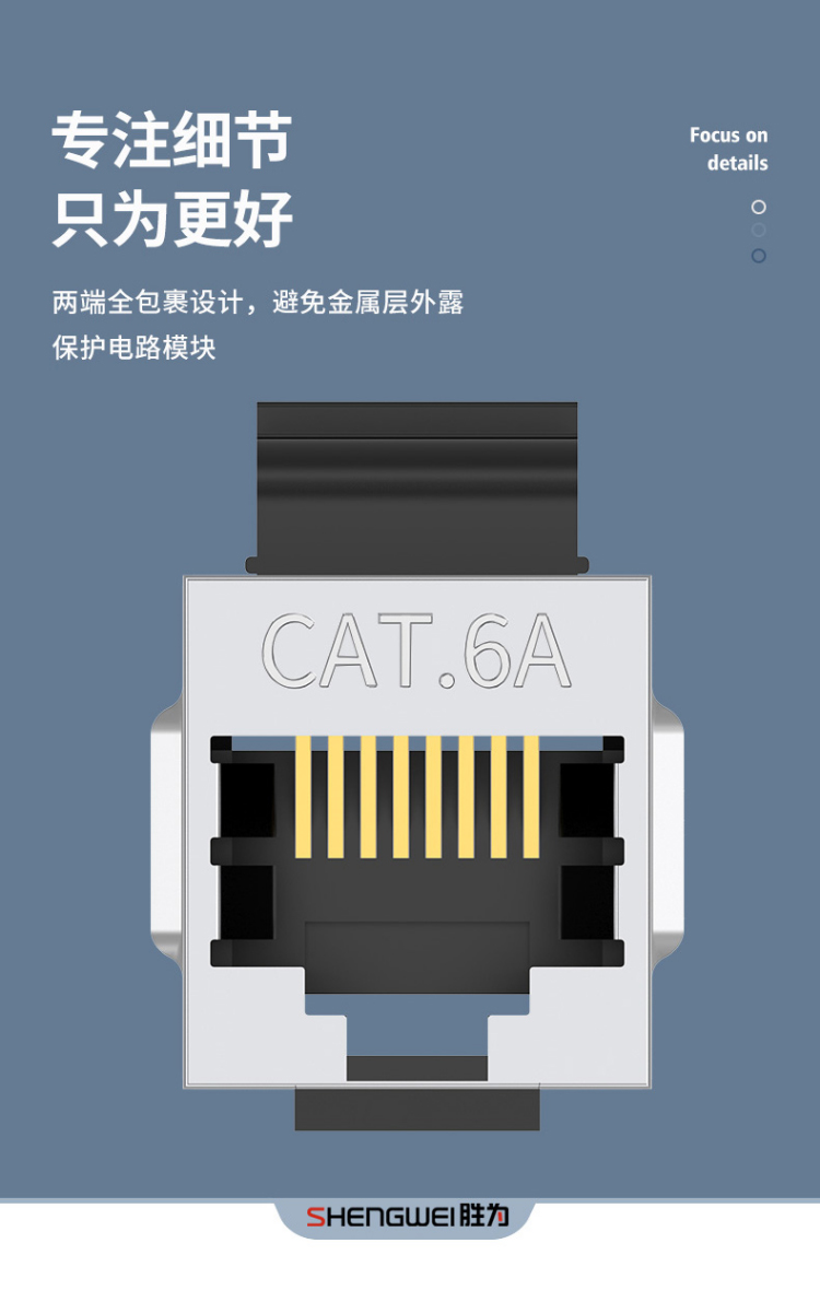 超六類帶屏蔽網(wǎng)絡(luò)模塊8P8C 勝為CAT6A網(wǎng)絡(luò)布線適用于信息面板 RJ45插座連接頭直通頭CMK6A02X