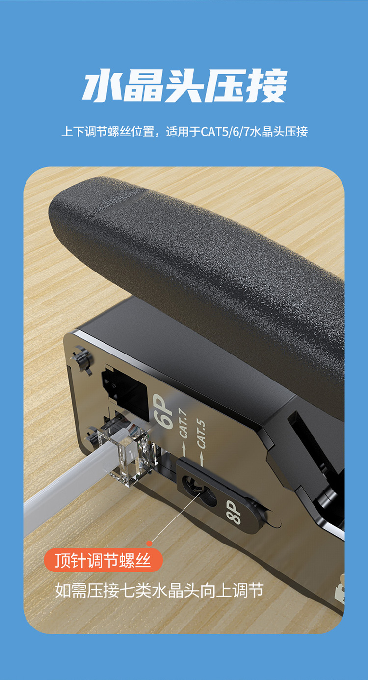 功能:壓制超五類/六類/七類,6P6C/6P4C/6P2C電話水晶頭