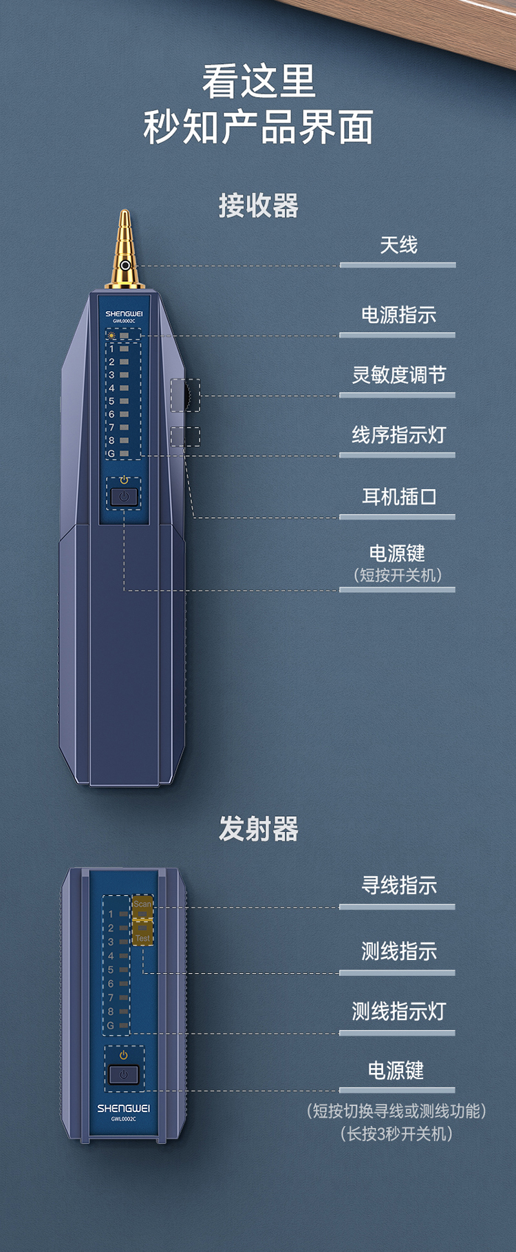 網(wǎng)絡(luò)尋線儀 多功能電話線網(wǎng)線測試儀 勝為巡線儀器查線儀查線器 精準型POE尋線儀套裝 GWL0002C