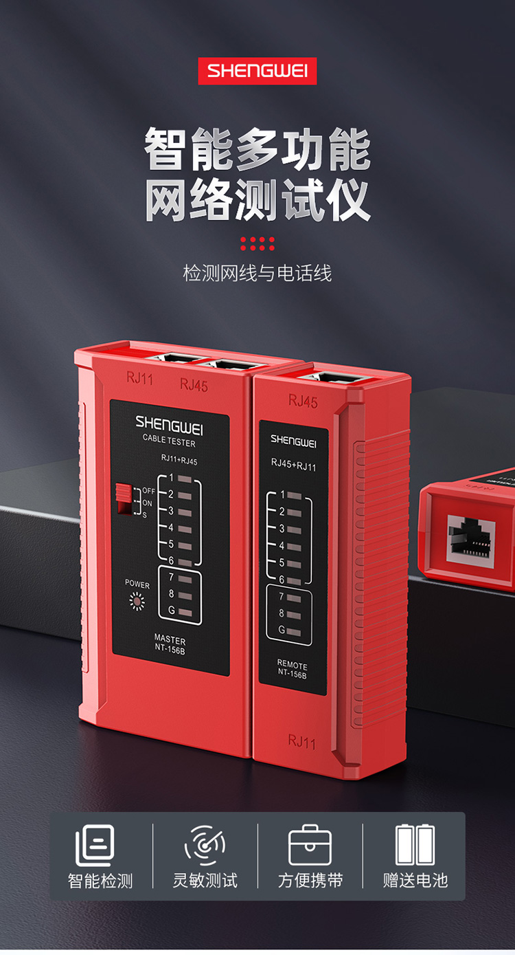網(wǎng)絡(luò)測(cè)試儀 多功能測(cè)線儀 勝為電腦網(wǎng)絡(luò)水晶頭電話線工程家用 NT-156B