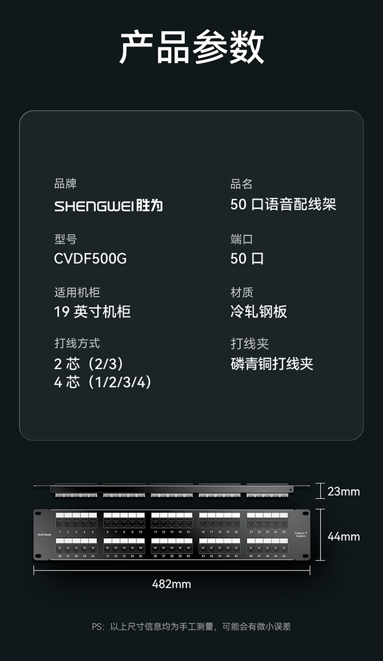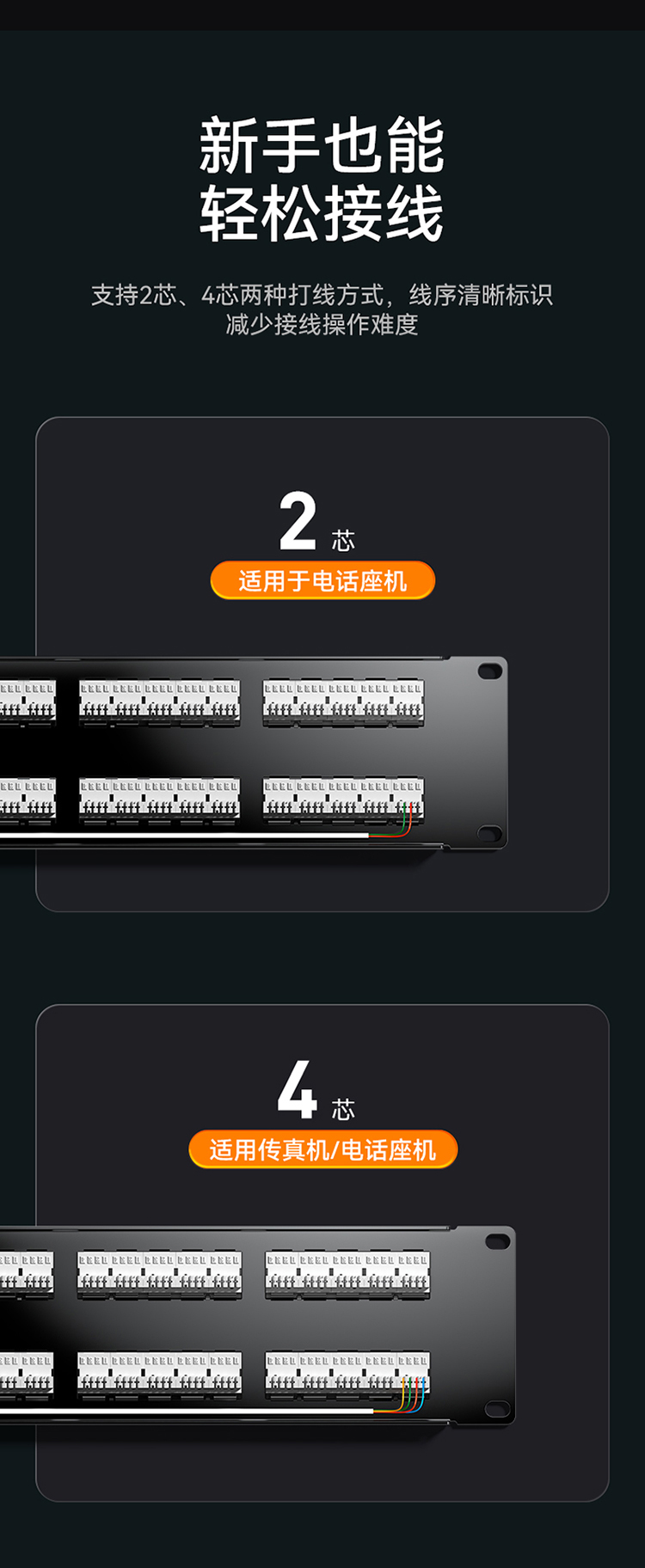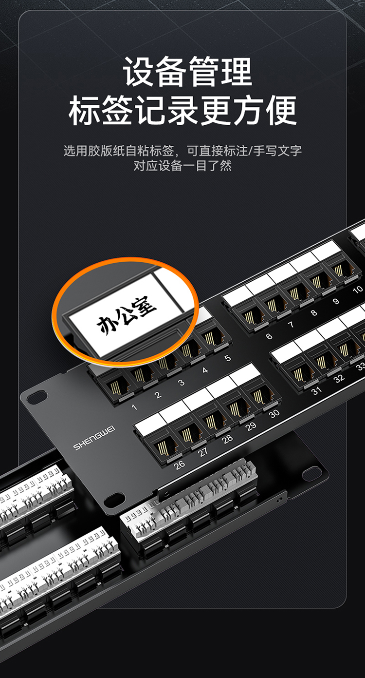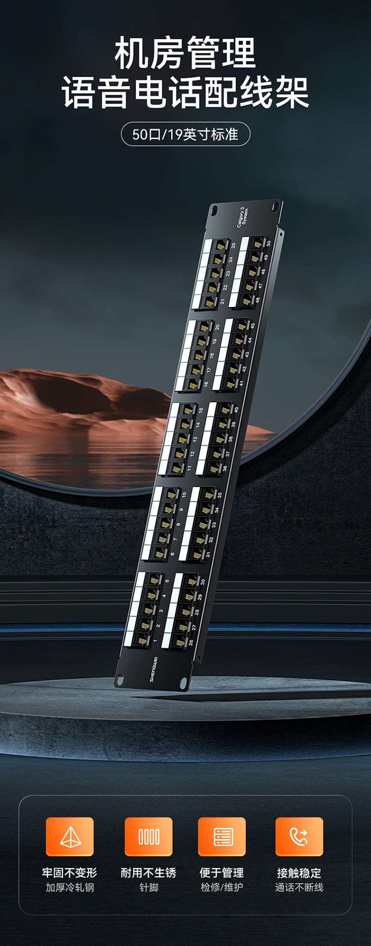 50口語音電話配線架 勝為4芯2芯電話線高端工程級(jí)鍍金1U模塊式 CVDF500G