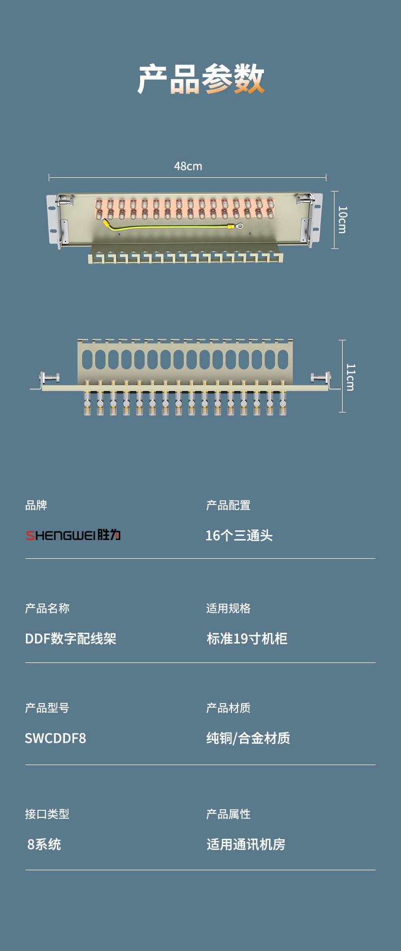 8系統(tǒng)DDF數(shù)字配線架19英寸 勝為西門子端子單元板含三通頭 2M兩兆E1同軸電纜接頭終端連接器 SWCDDF8