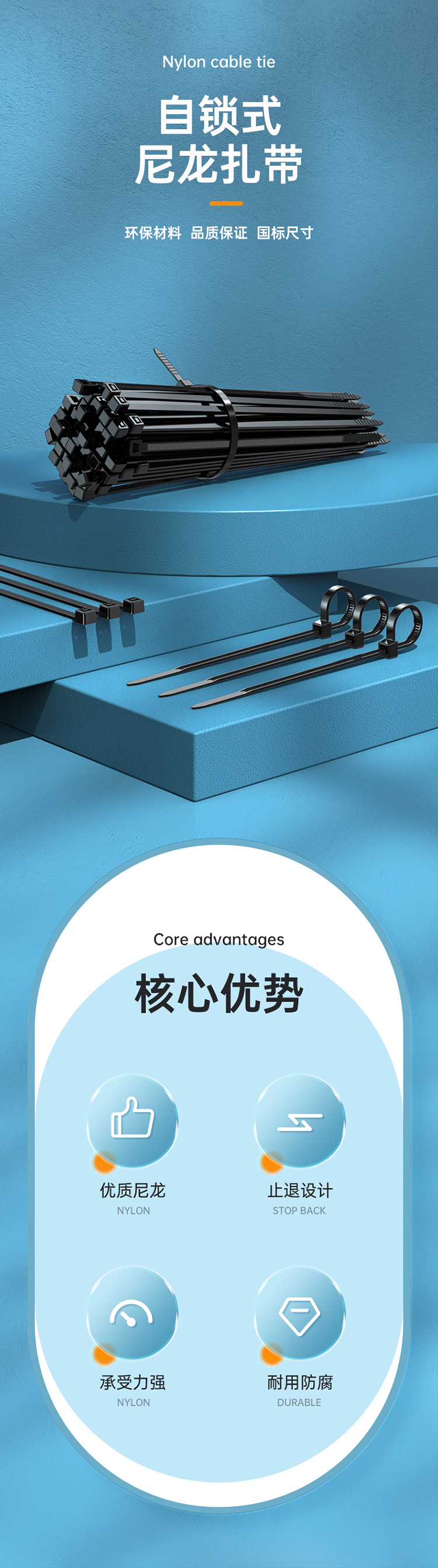 自鎖式尼龍塑料扎帶小號(hào)2.5*100mm 100根/袋桌面網(wǎng)線電話線收納帶 勝為卡扣理線捆扎黑色束線帶 CGZ3101G