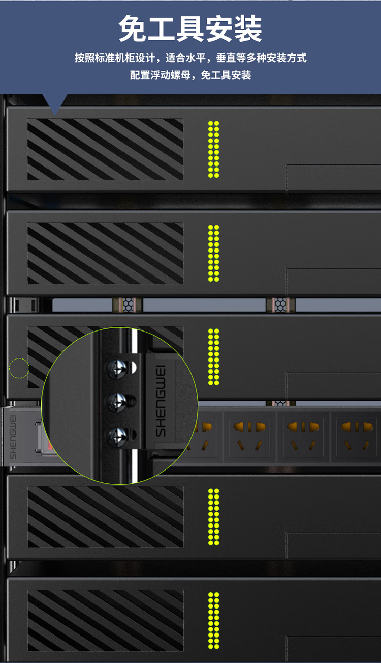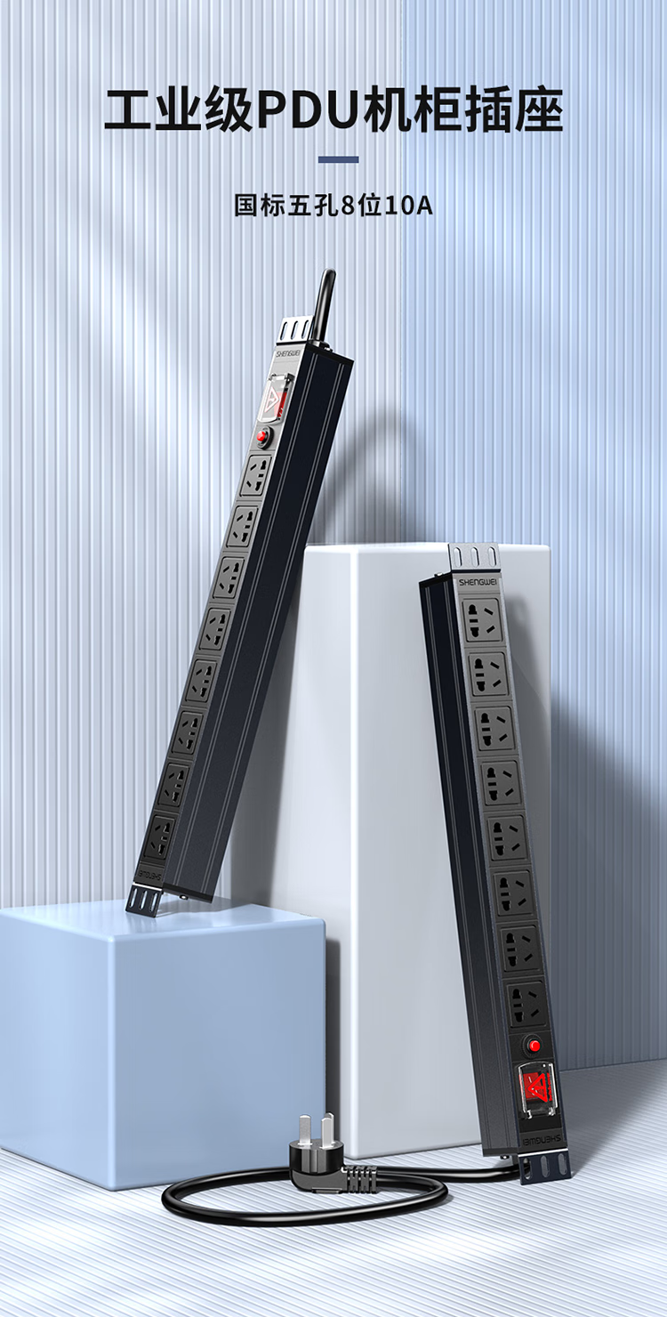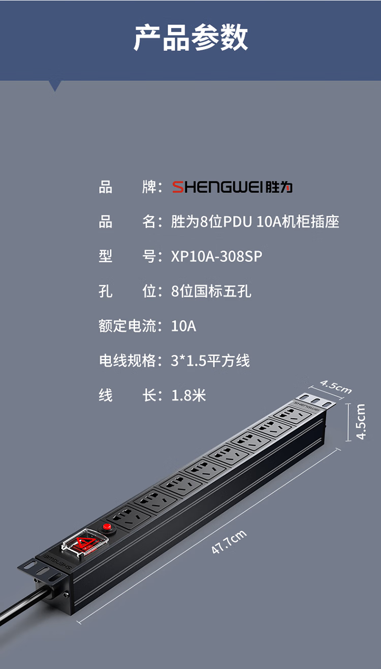 PDU機柜插座 8位10A總控過載保護 勝為國標工程機房機柜專用多功能插座插排接線板 XP10A-308SP
