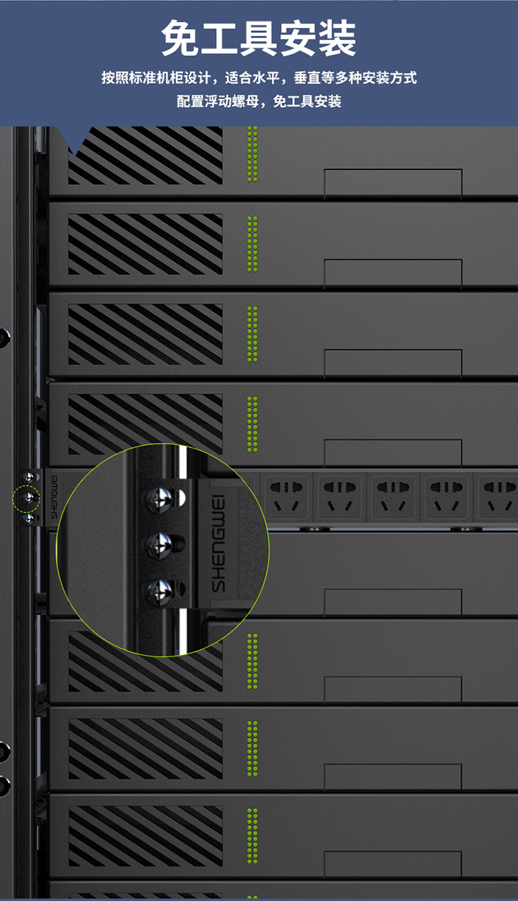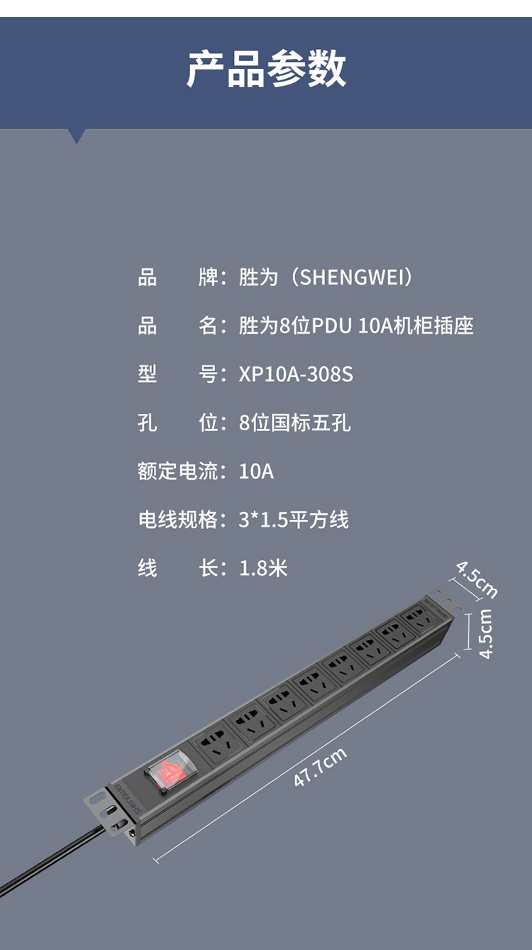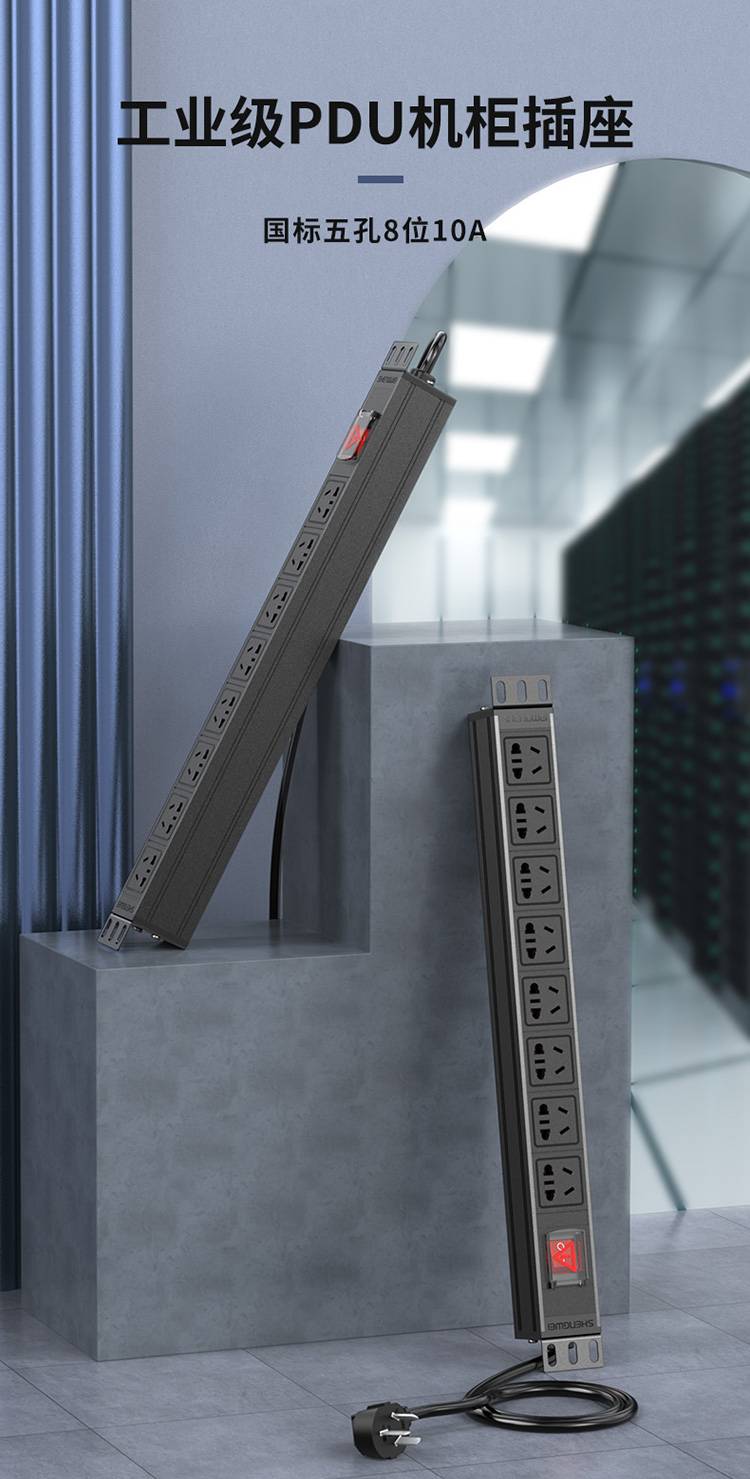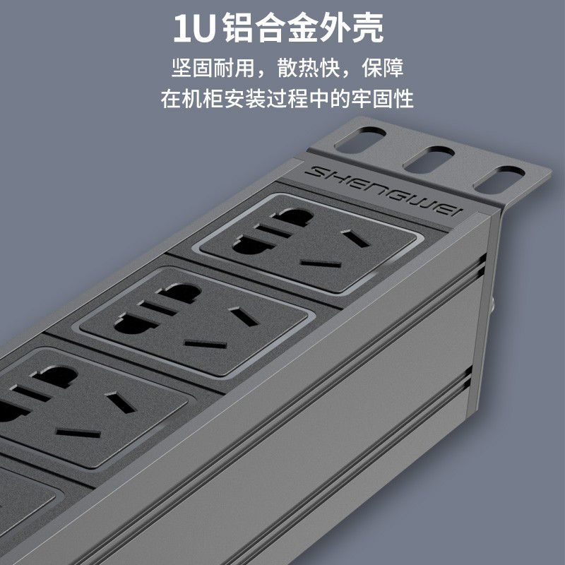 PDU機(jī)柜插座 8位10A總控開關(guān) 勝為 國標(biāo)工程機(jī)房機(jī)柜專用多功能插座插排接線板 XP10A-308S