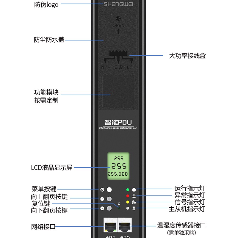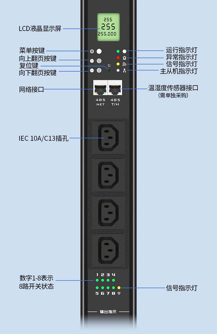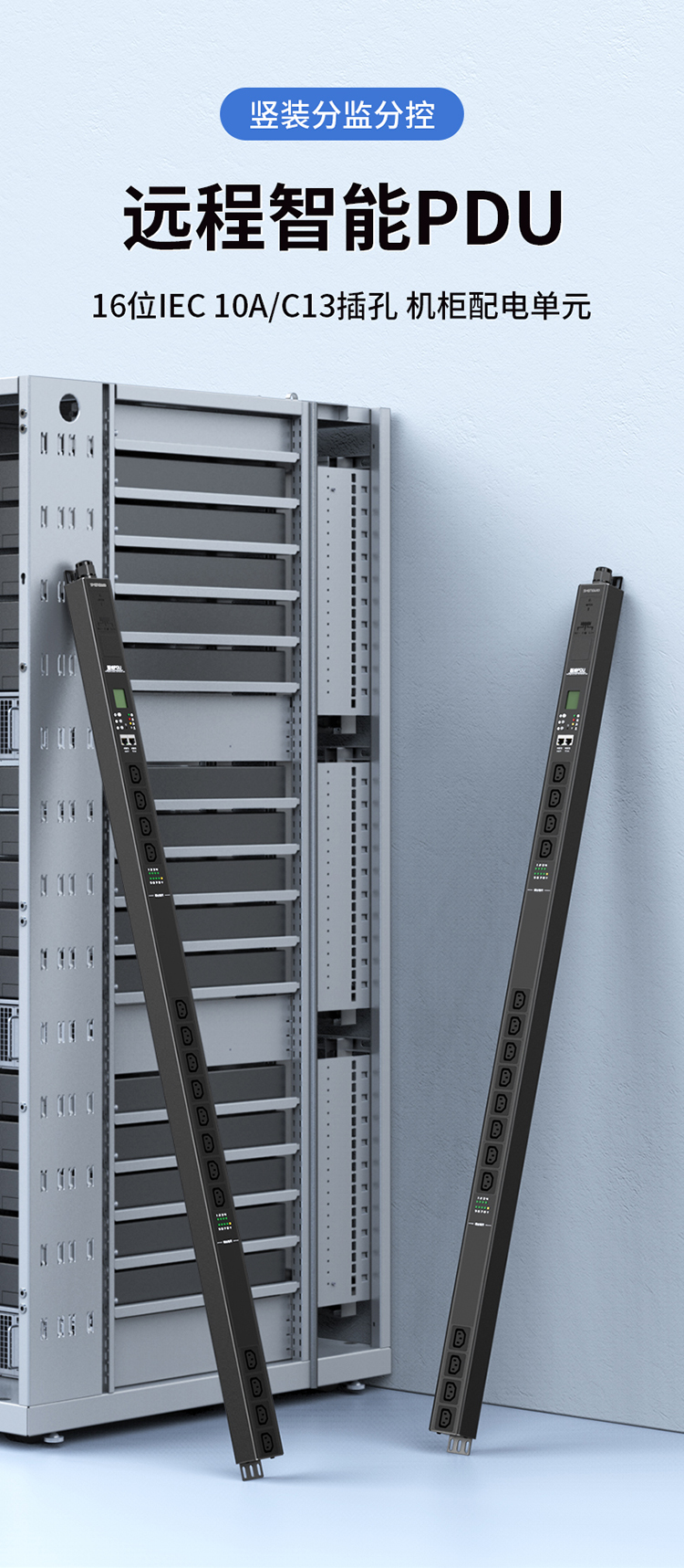 PDU機(jī)柜插座16位10a工業(yè)智能遠(yuǎn)程級控制監(jiān)測報(bào)警插排 勝為多功能液晶數(shù)顯電源插板CPD-102Z