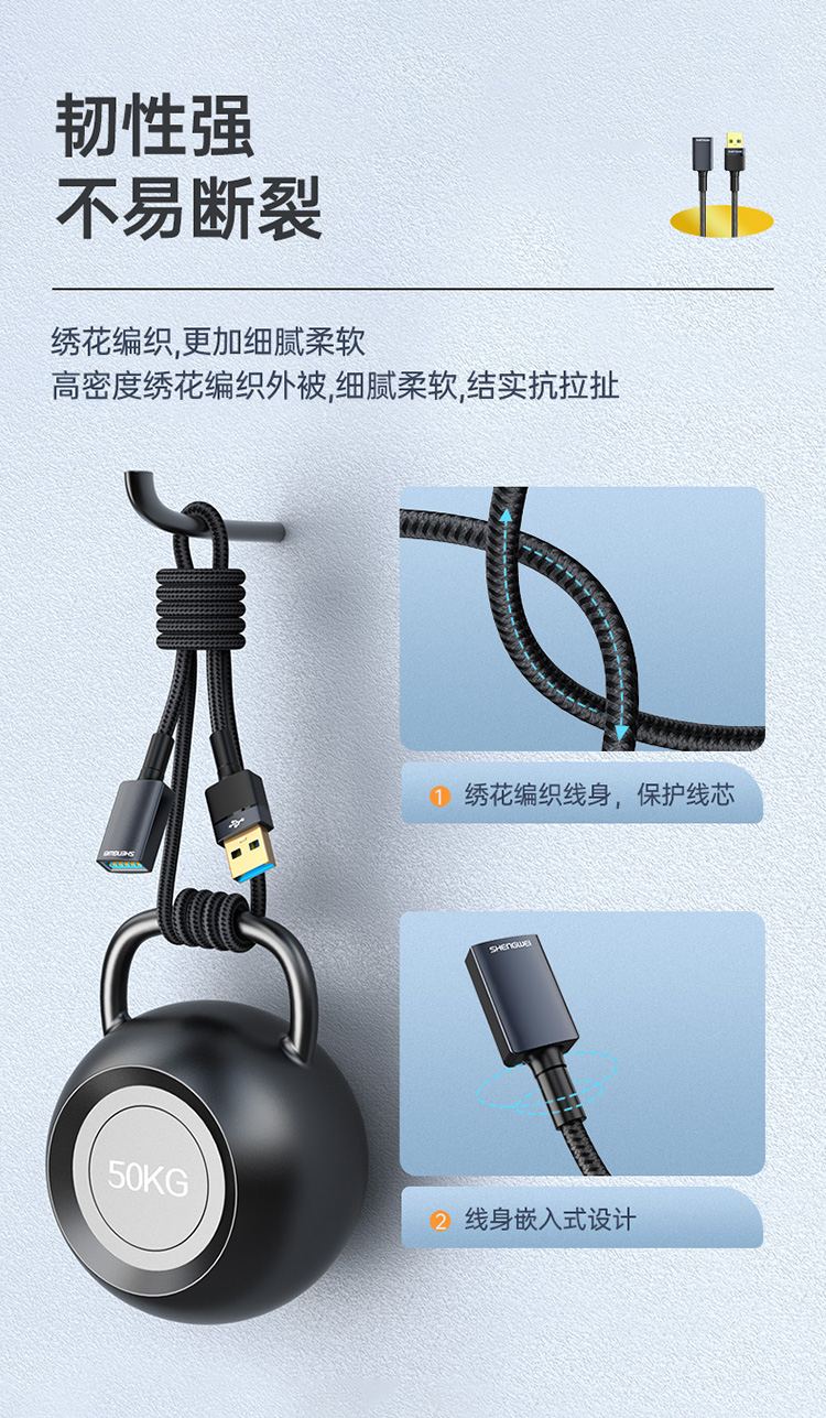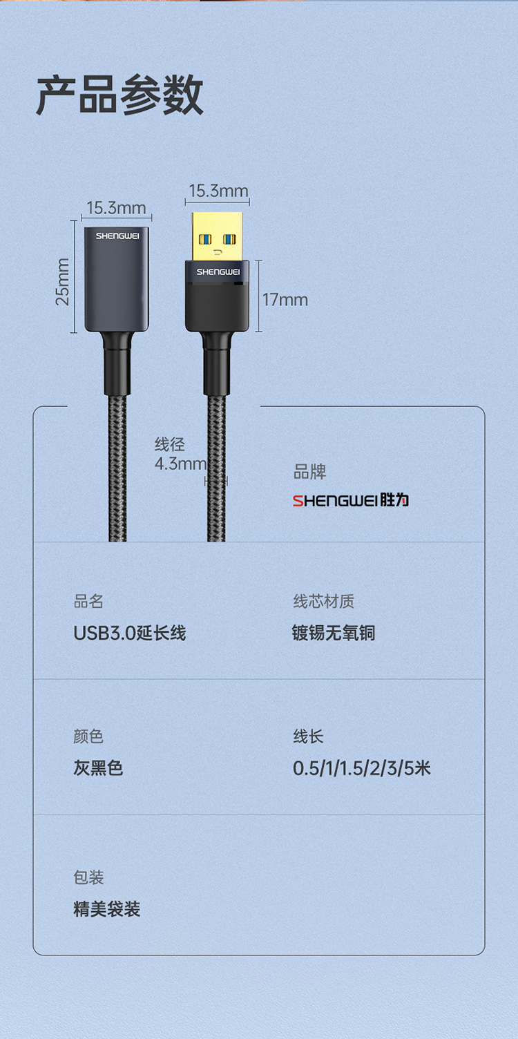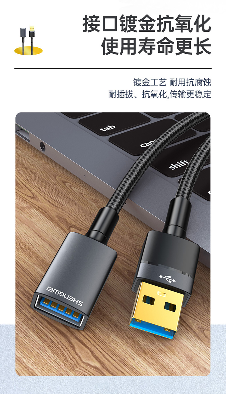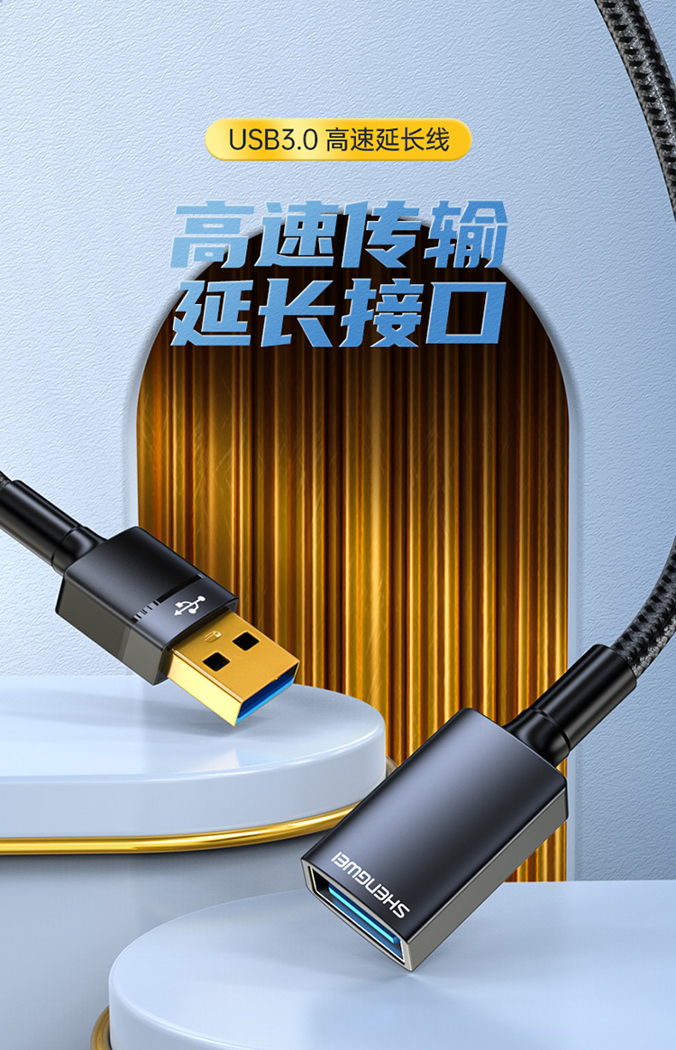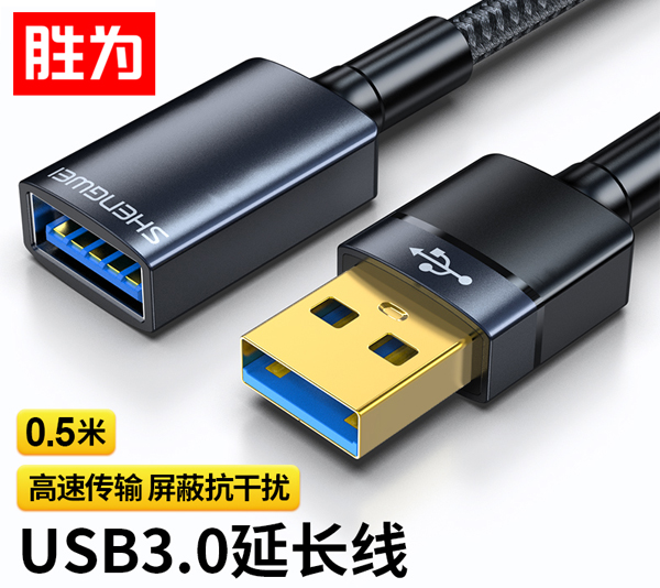 USB3.0延長線 公對(duì)母 AM/AF 勝為移動(dòng)硬盤盒高速傳輸數(shù)據(jù)連接線鼠標(biāo)鍵盤加長線 0.5米 AUM0005J