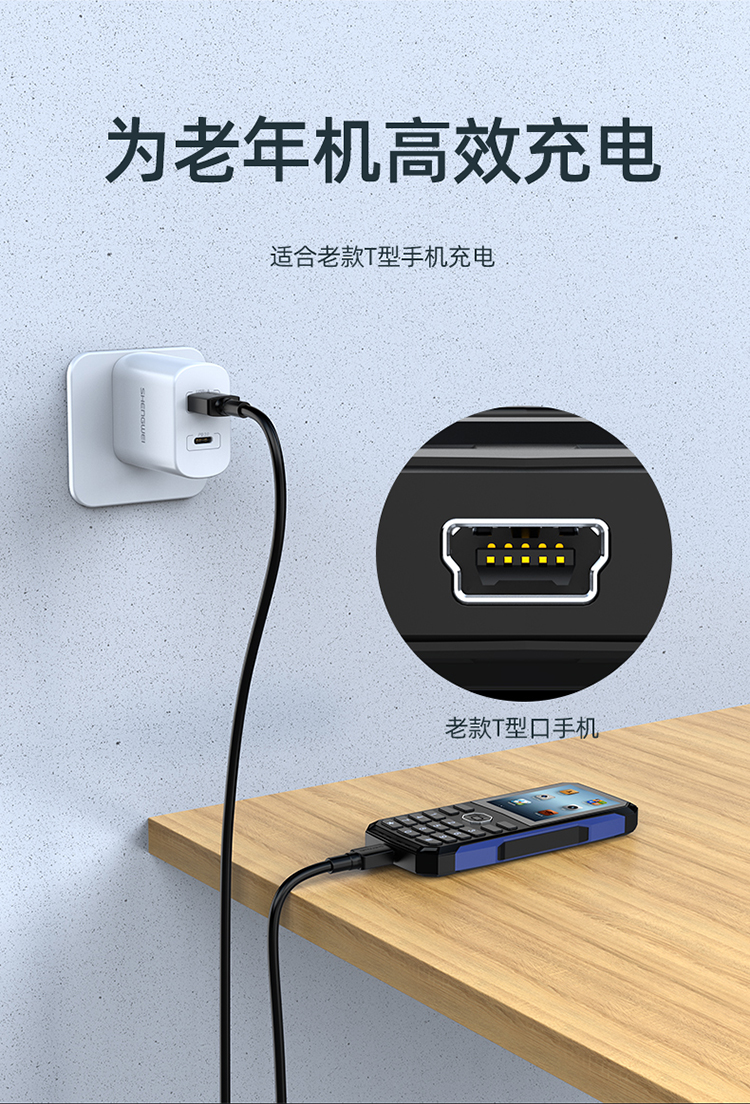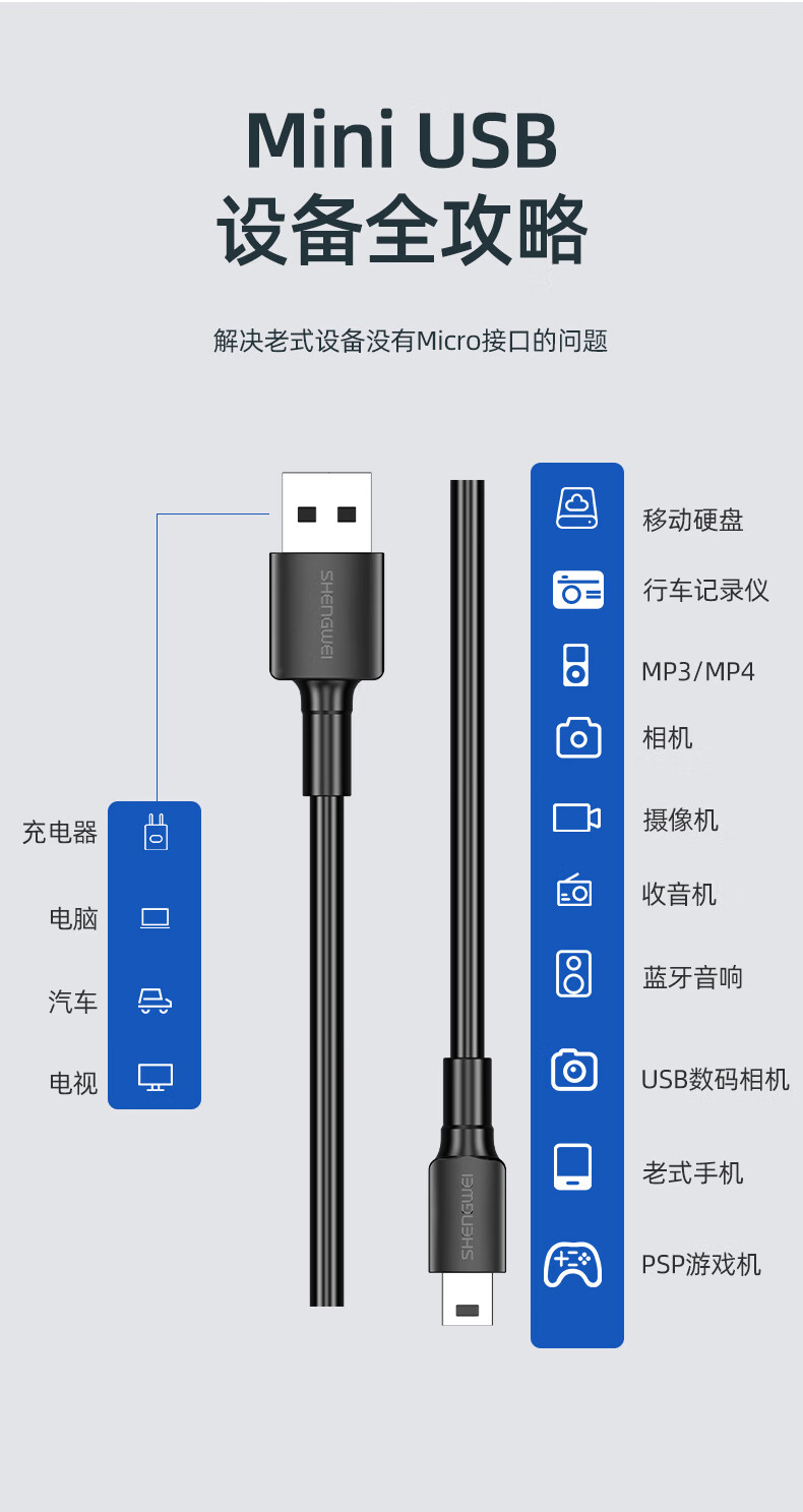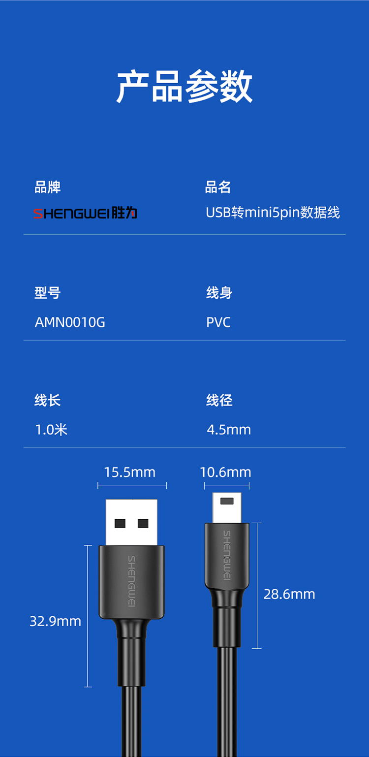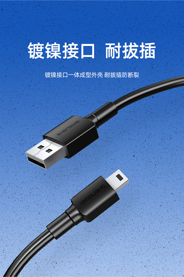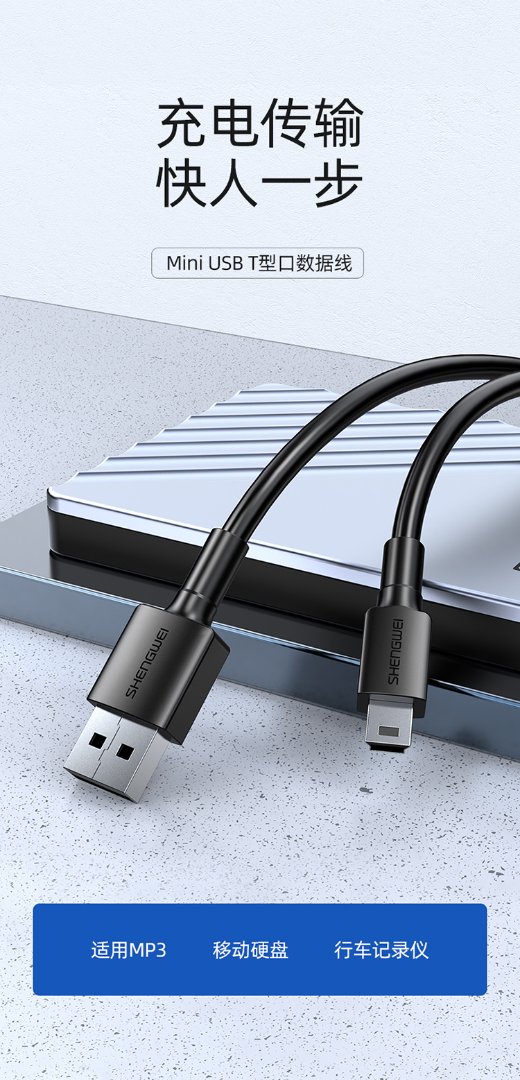 勝為 USB轉MiniUSB線 平板移動硬盤行車記錄儀數碼相機攝像機T型口電源連接線 1米 AMN0010G