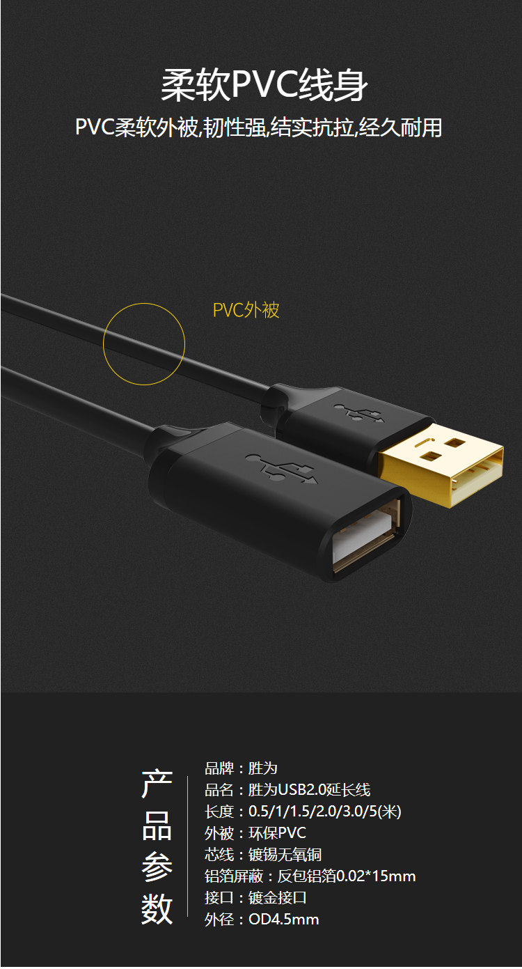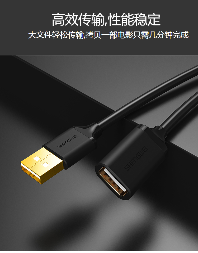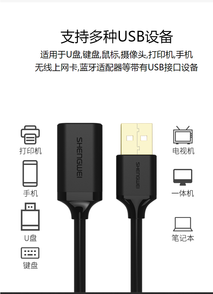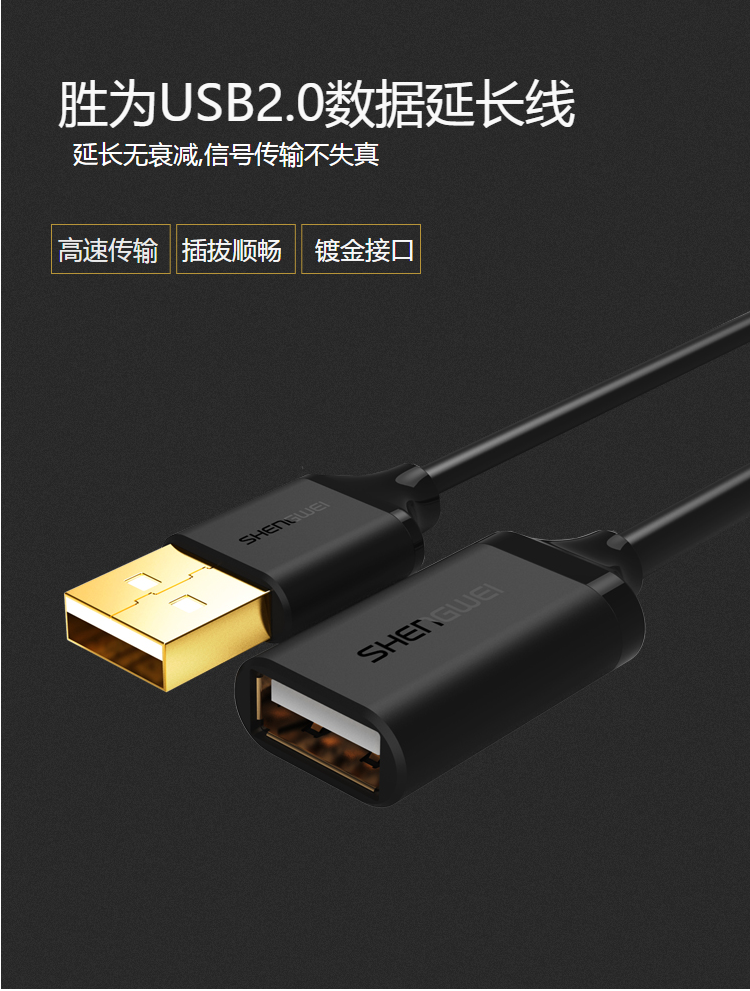 USB2.0延長(zhǎng)線公對(duì)母 U盤(pán)讀卡器數(shù)據(jù)線連接線 勝為鼠標(biāo)鍵盤(pán)加長(zhǎng)線5米 US-2050