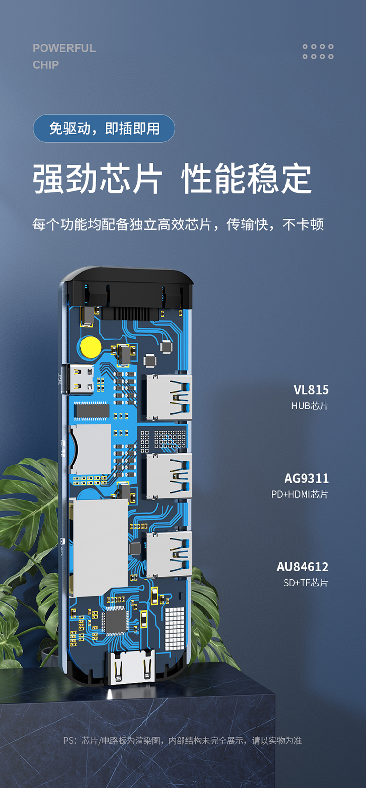 Type-C擴(kuò)展塢七合一 適用蘋果MacBook華為電腦拓展塢轉(zhuǎn)HDMI線轉(zhuǎn)換器 勝為轉(zhuǎn)接頭筆記本投屏 ZHB7001J