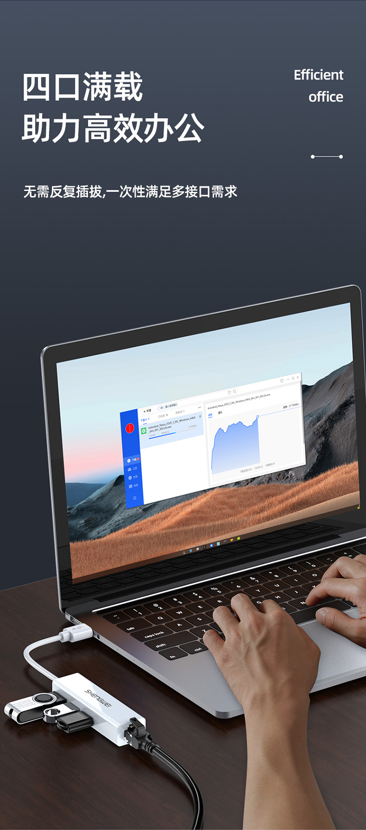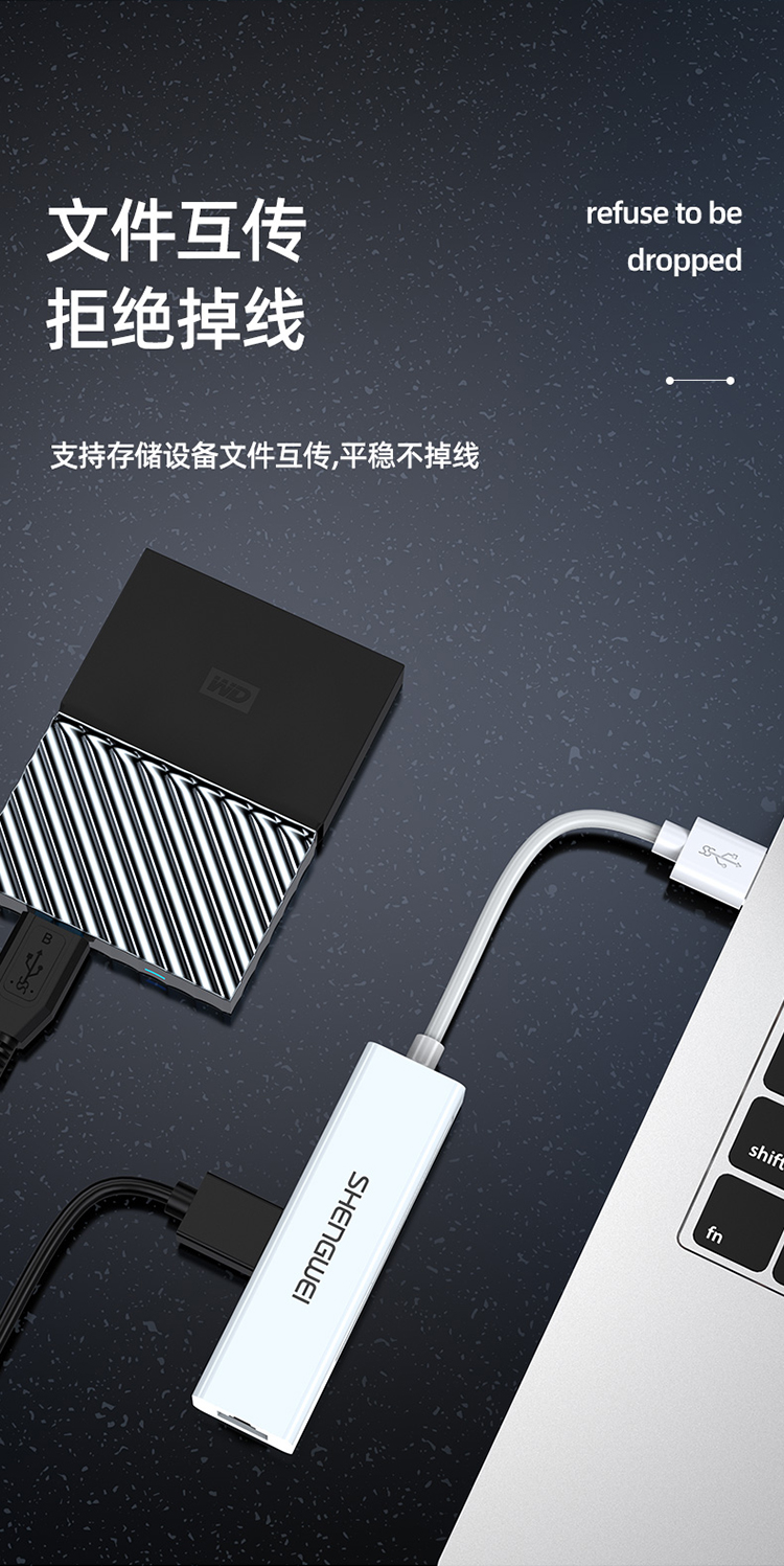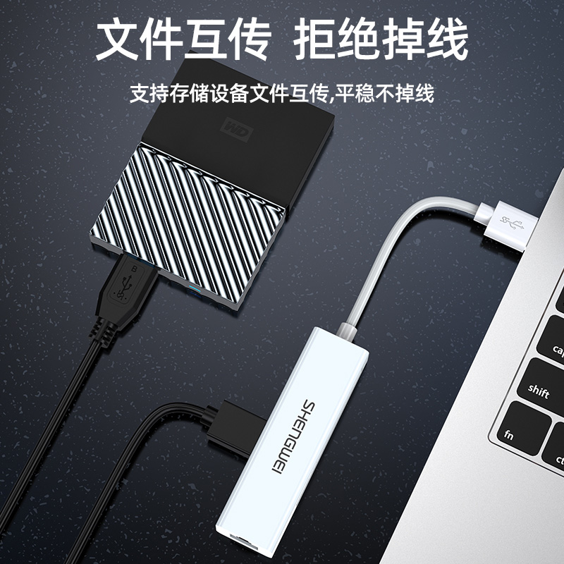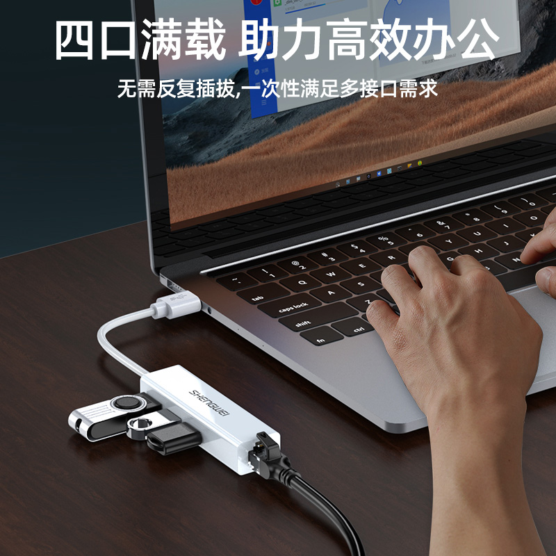 USB分線器轉(zhuǎn)網(wǎng)口有線網(wǎng)卡RJ45轉(zhuǎn)換器 勝為拓展塢四合一適用蘋果mac華為電腦HUB擴展塢 EUR0001H