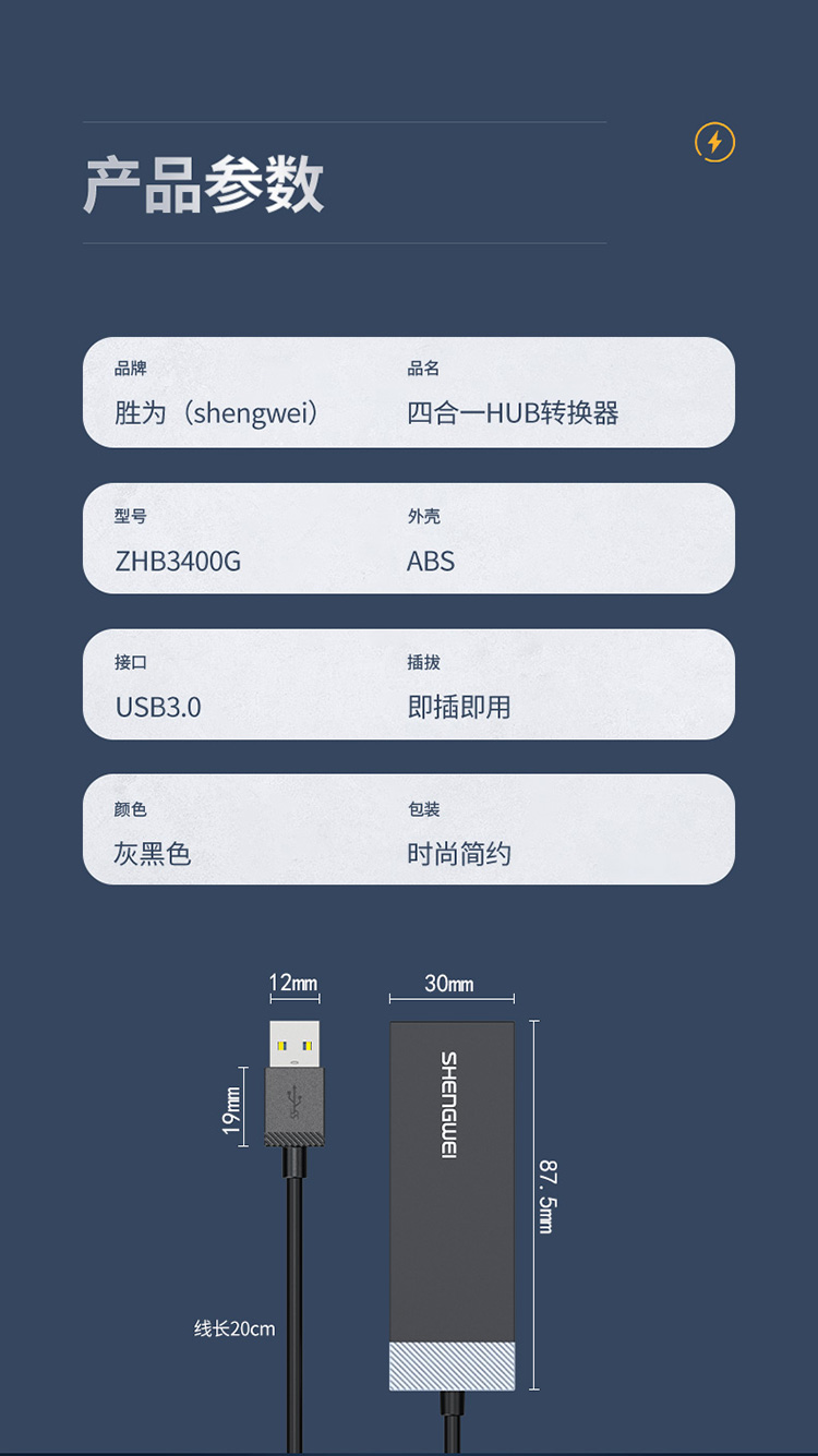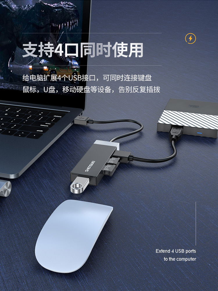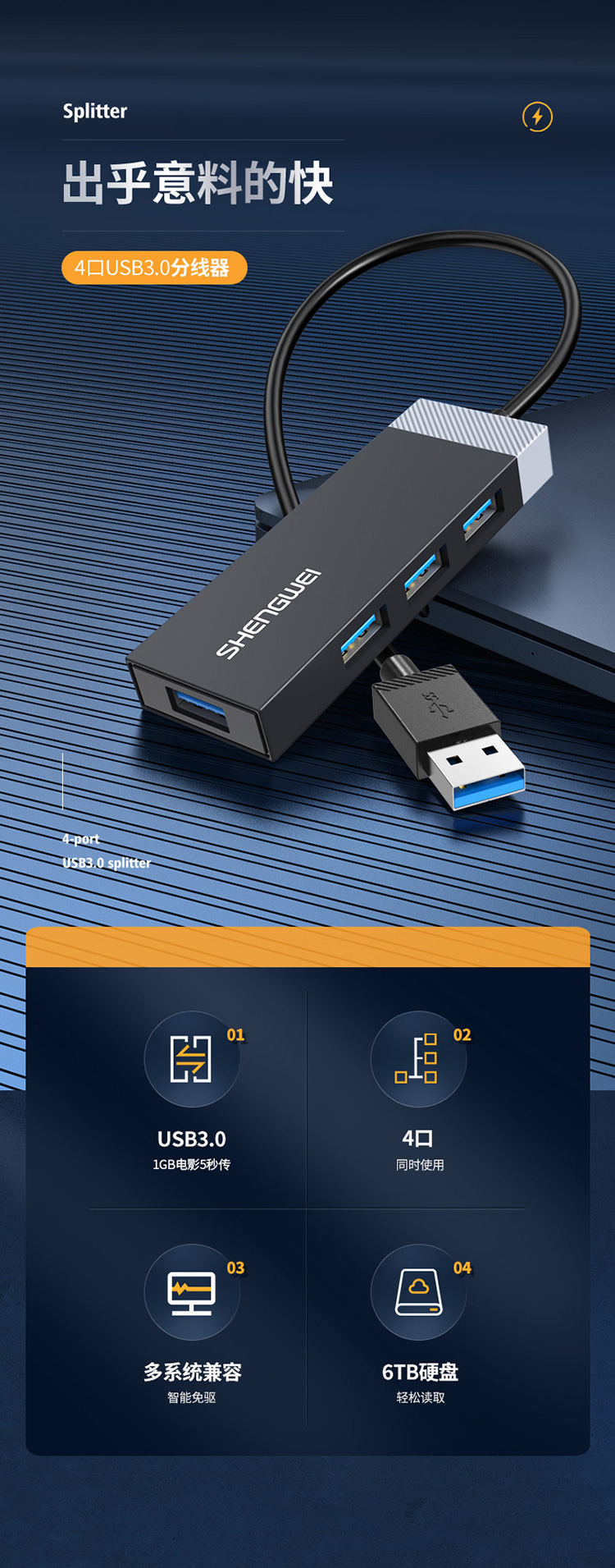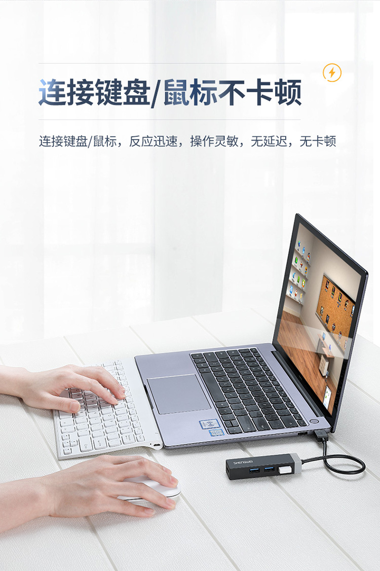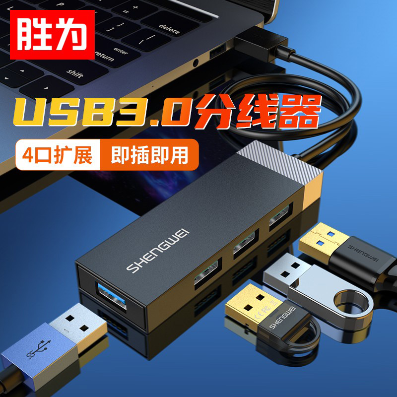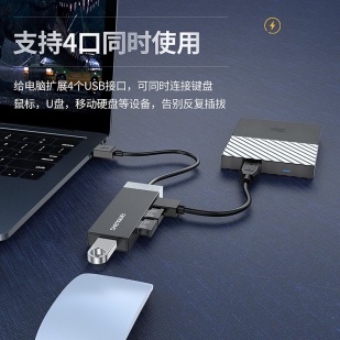 USB3.0分線器 4口HUB集線器 筆記本電腦一拖四轉(zhuǎn)換器 勝為 四合一擴(kuò)展塢灰黑色 ZHB3400G