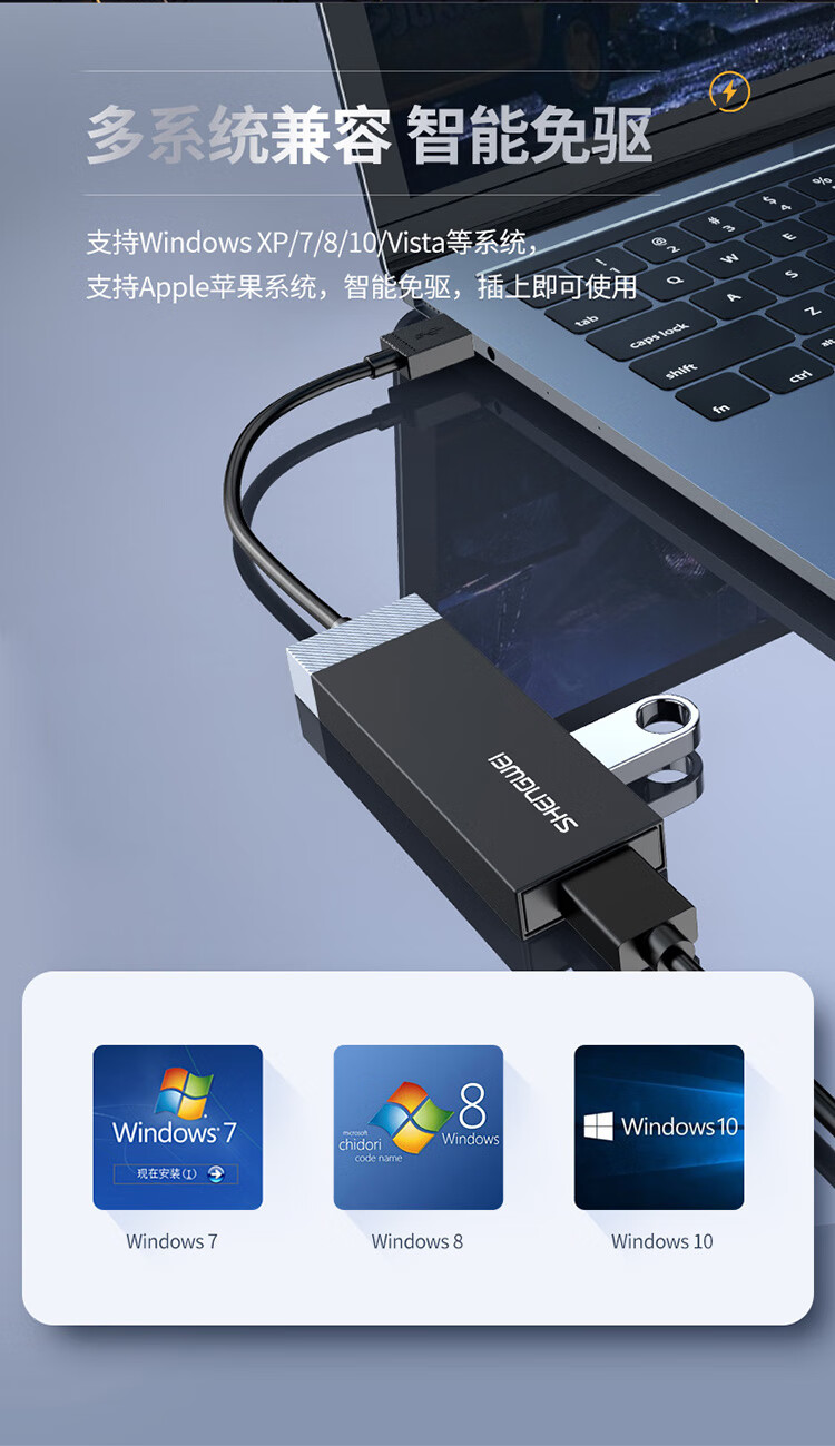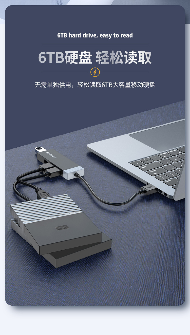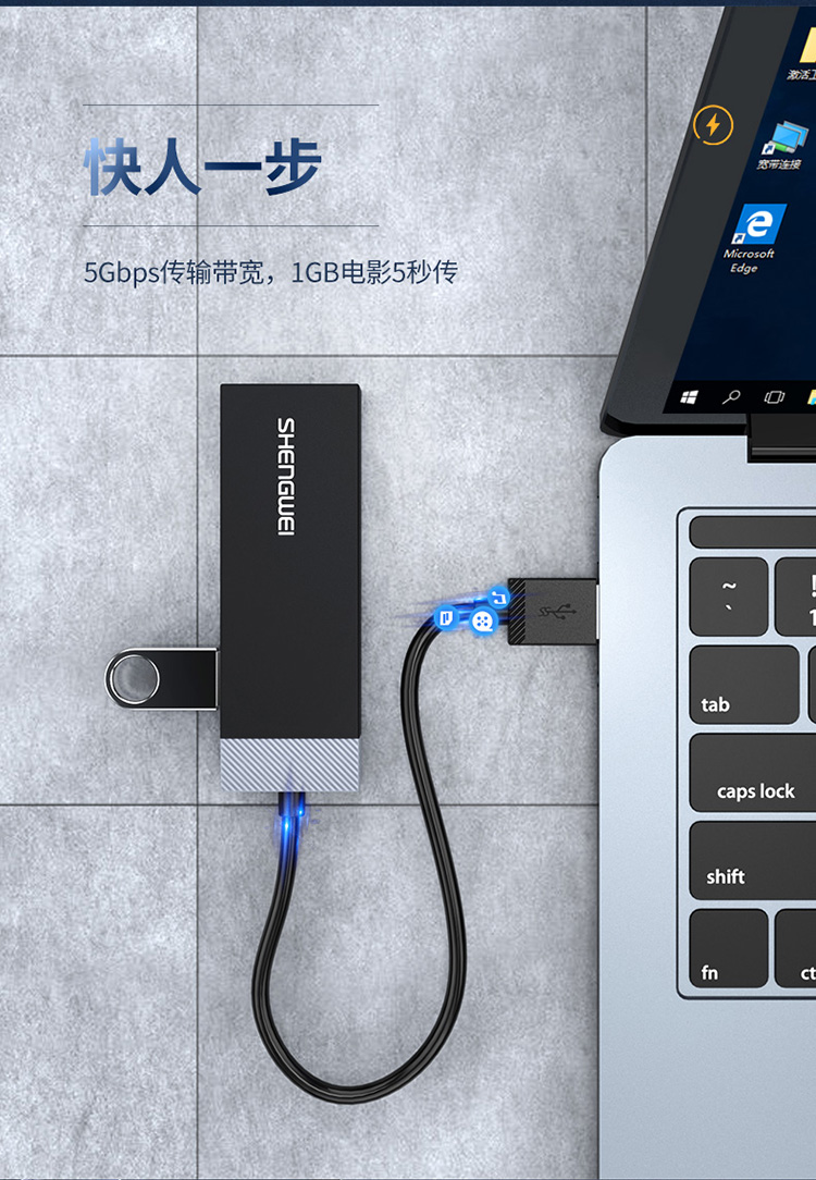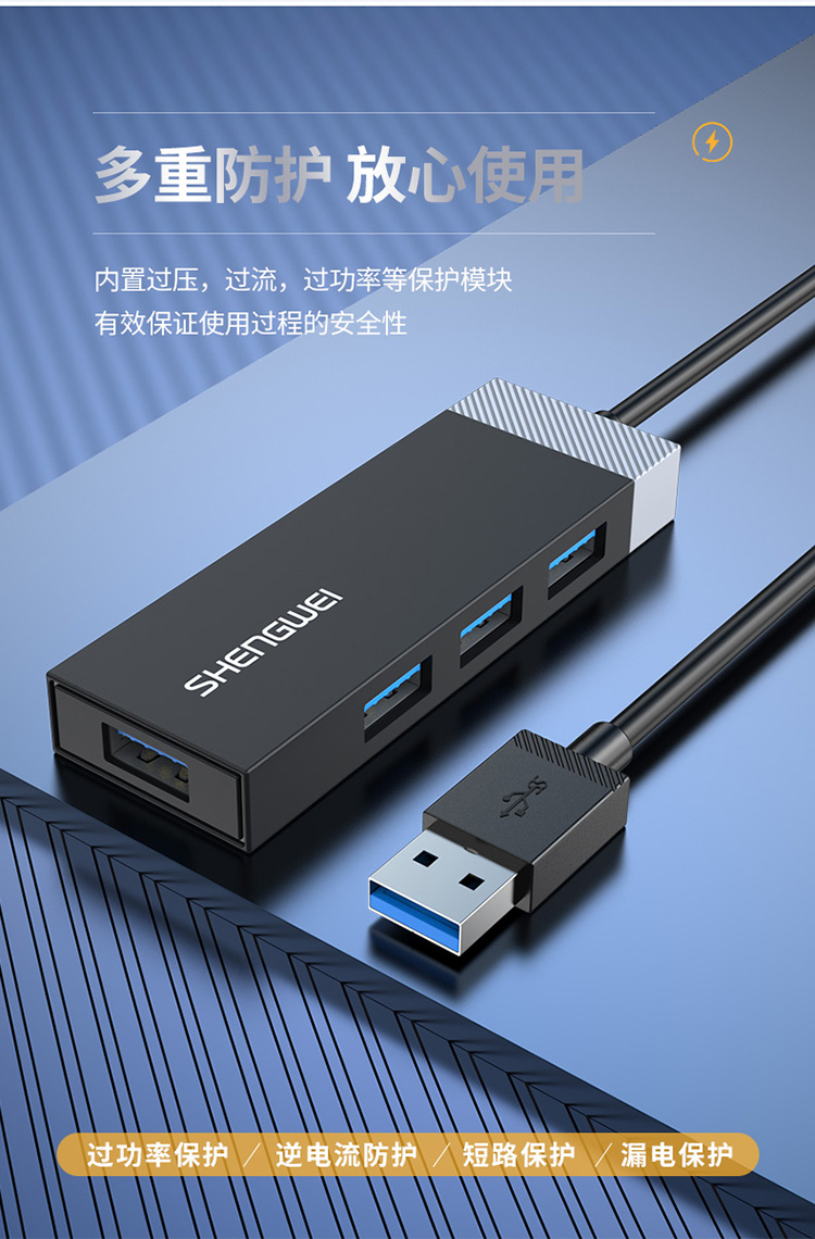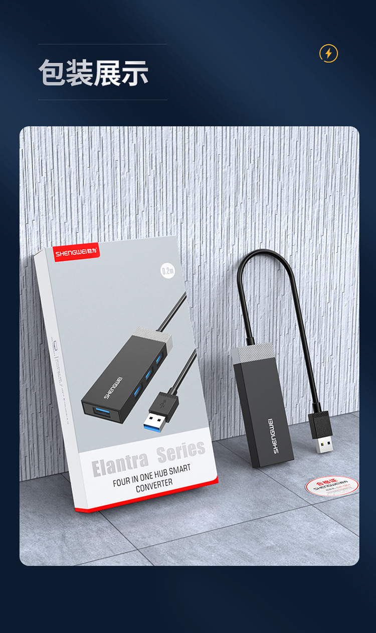 USB3.0分線器 4口HUB集線器 筆記本電腦一拖四轉(zhuǎn)換器 勝為 四合一擴(kuò)展塢灰黑色 ZHB3400G