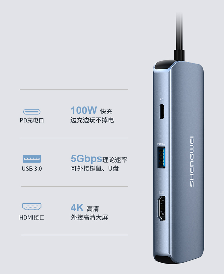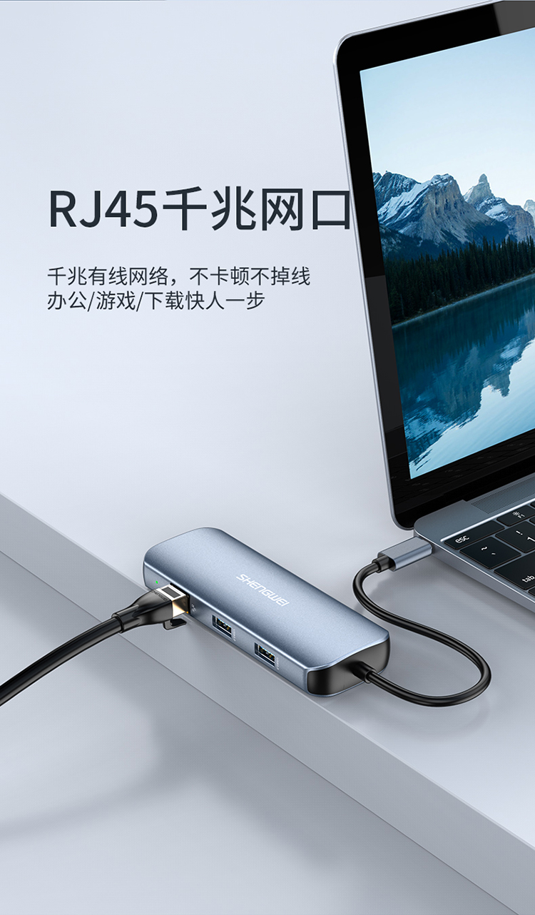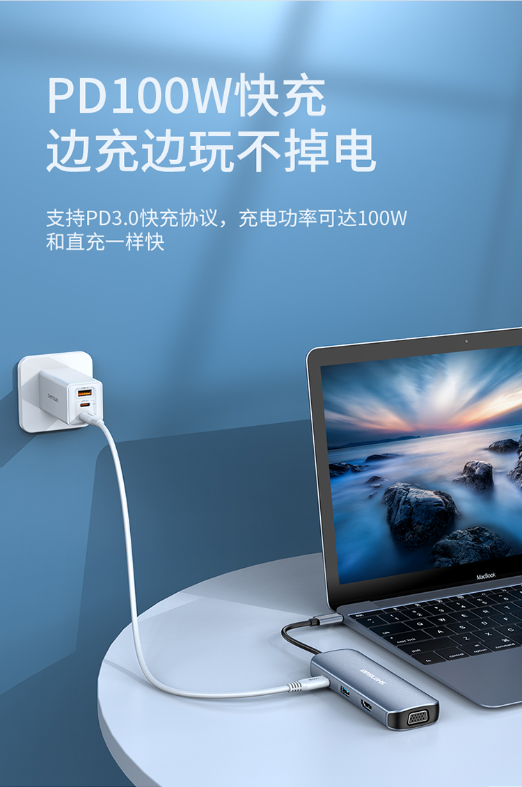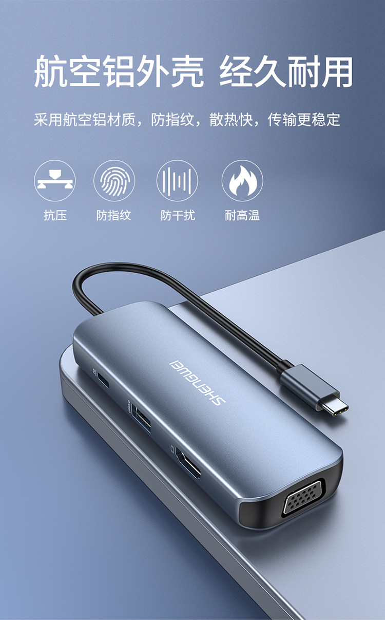 七合一擴(kuò)展塢 USB-C轉(zhuǎn)HDMI/VGA轉(zhuǎn)接頭投屏蘋(píng)果華為Macbook電腦轉(zhuǎn)換器千兆網(wǎng)口 勝為 ZHB7012J