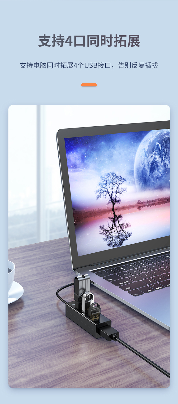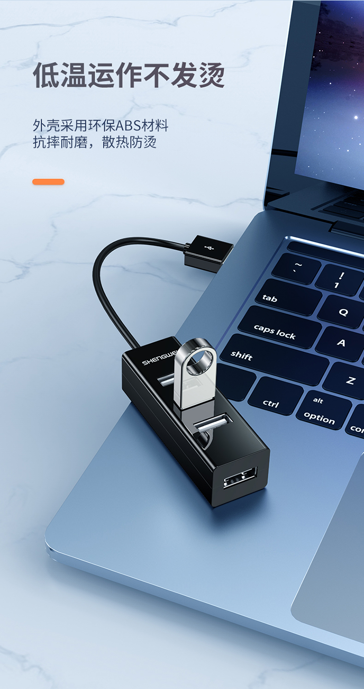 USB分線器 4口HUB拓展塢集線器擴(kuò)展塢便攜式筆記本臺(tái)式電腦四合一多接口 勝為轉(zhuǎn)換器延長(zhǎng)線 0.5m EUB0012H