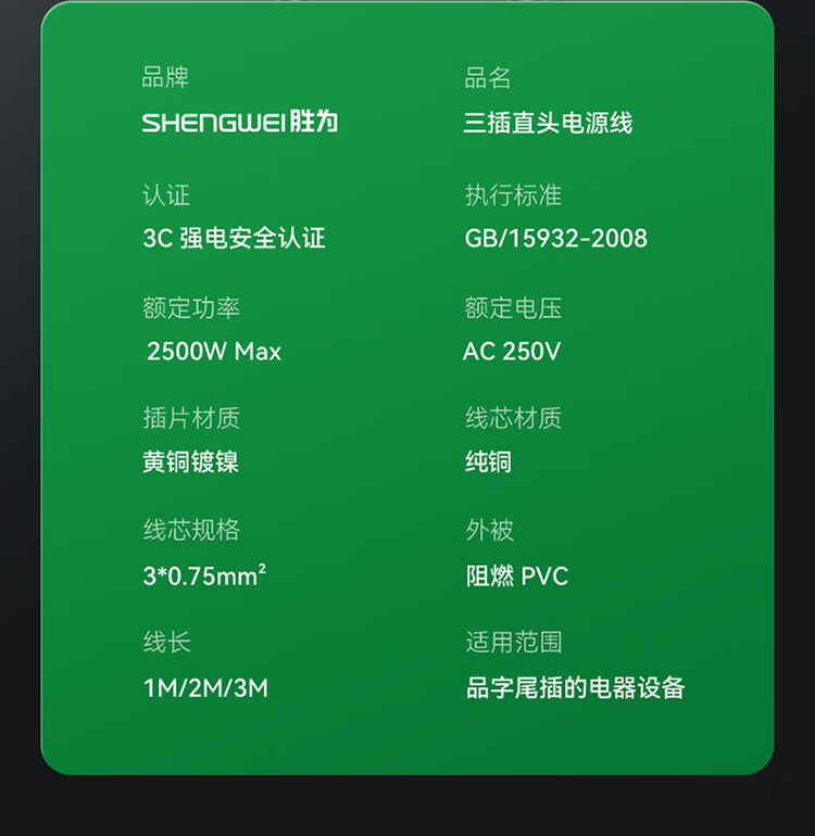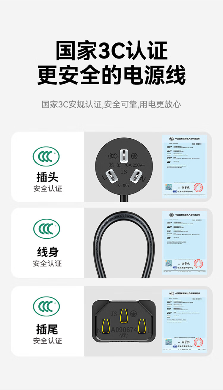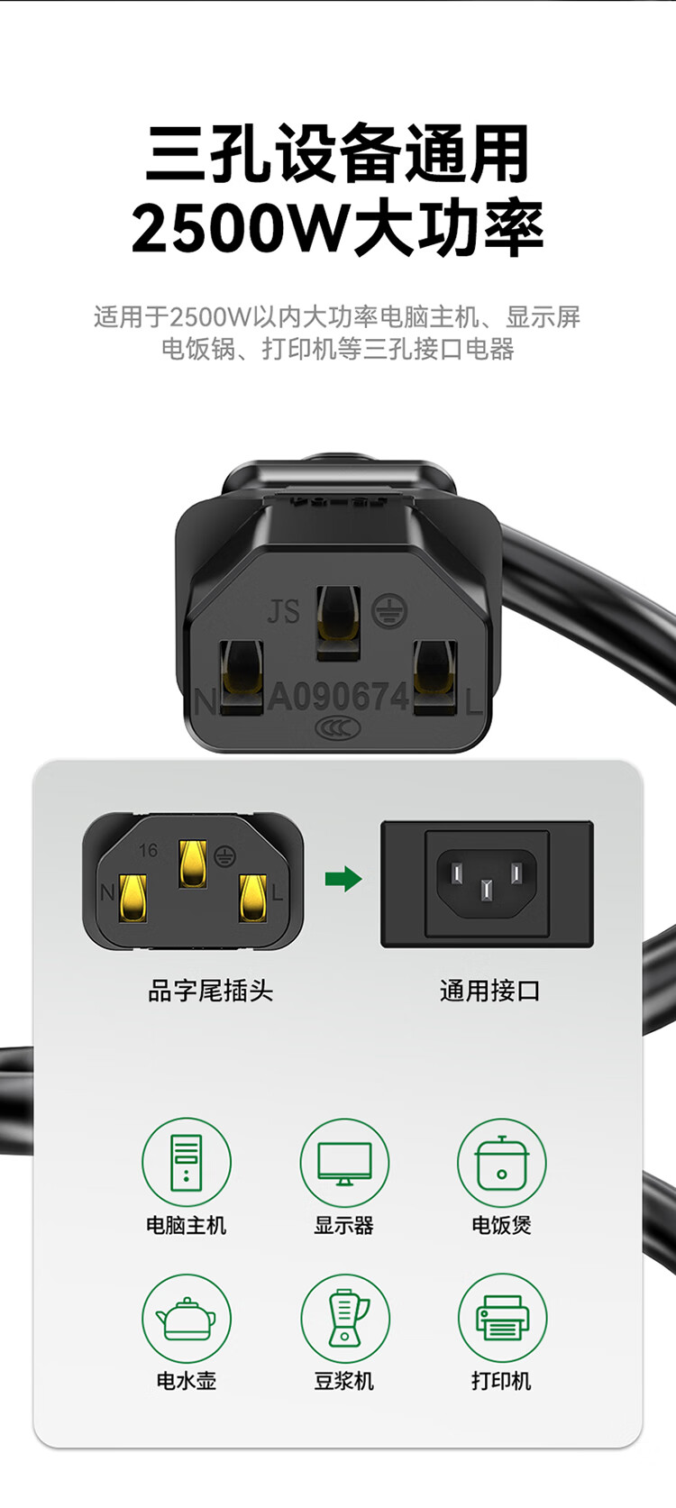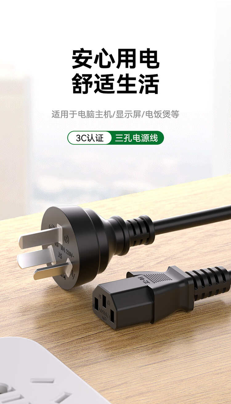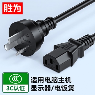 電腦顯示器主機(jī)電源線三芯品字尾帶3C安全認(rèn)證 適用于臺(tái)式機(jī)電飯煲打印機(jī)電視機(jī)直插頭1米 勝為 APY0010G