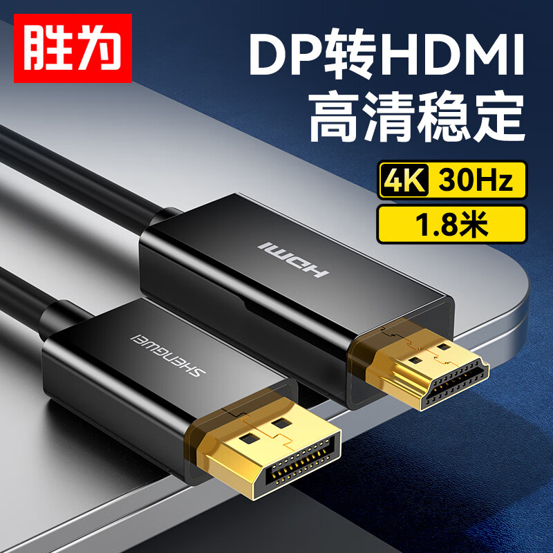 DP轉(zhuǎn)HDMI轉(zhuǎn)接線 4K高清連接線1.2版 DisplayPort轉(zhuǎn)HDMI視頻線 電腦接電視顯示器轉(zhuǎn)換器線 1.8米 勝為 ADH0018G