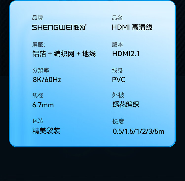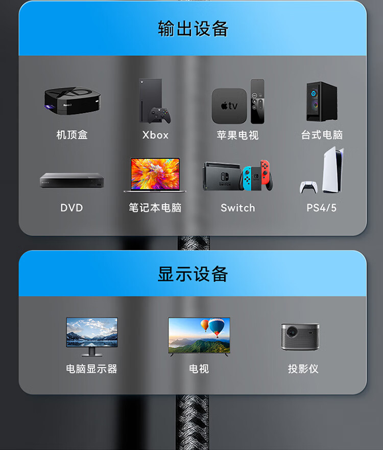 HDMI線2.1版 8K60Hz 4K120Hz 筆記本電腦機(jī)頂盒顯示器投影儀視頻連接線 1米AHH4010G