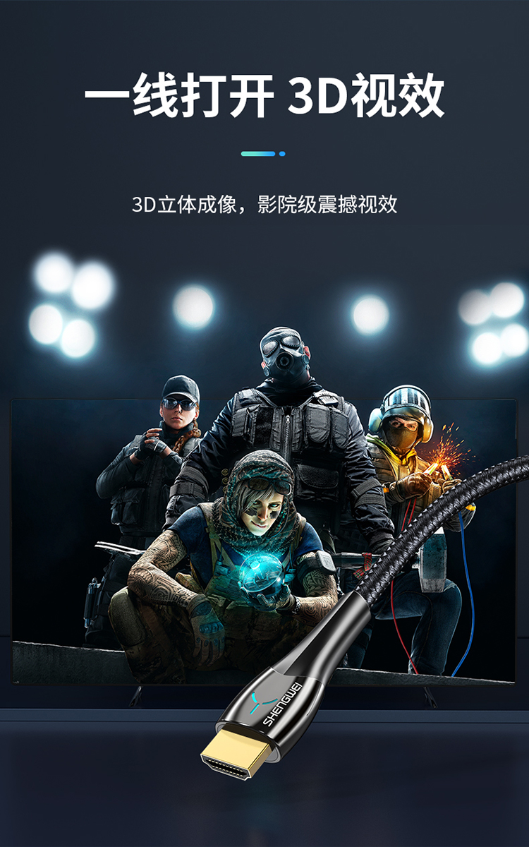 HDMI線4K/60Hz高清線湖光藍燈顯視頻線 勝為 電腦電視顯示器連接線 2米 AHC0020G