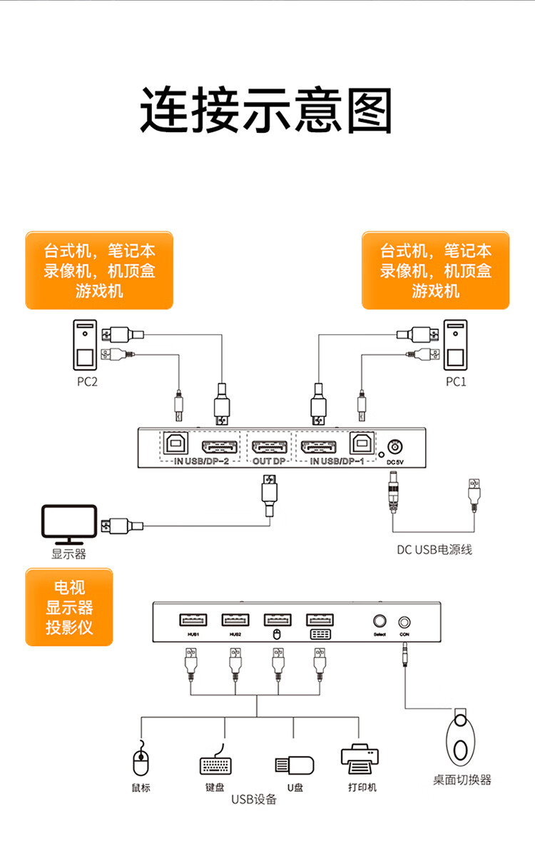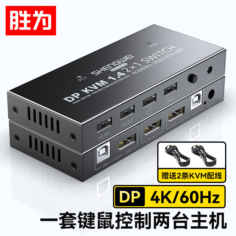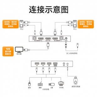 KVM切換器DP接口 勝為二進(jìn)一出臺(tái)式機(jī)筆記本顯示器監(jiān)控鼠標(biāo)鍵盤(pán)USB打印機(jī)共享器 DDP3201K