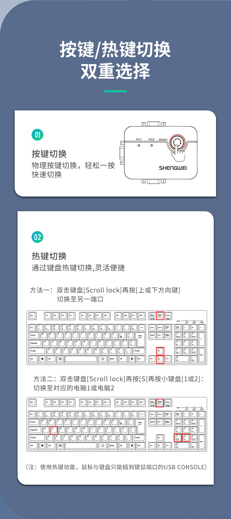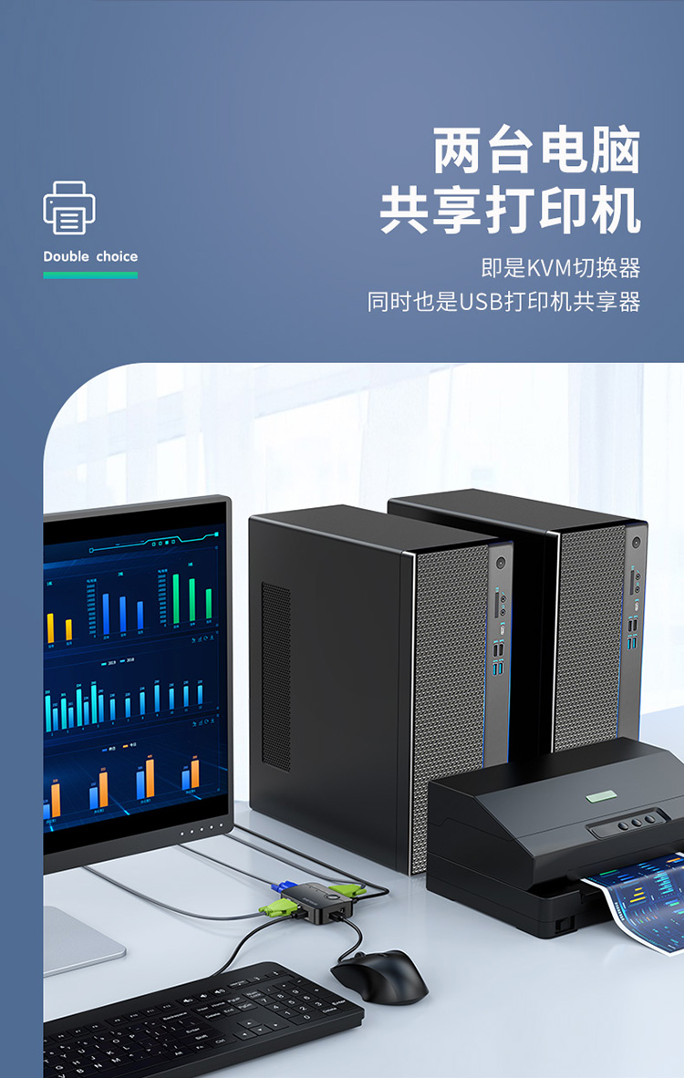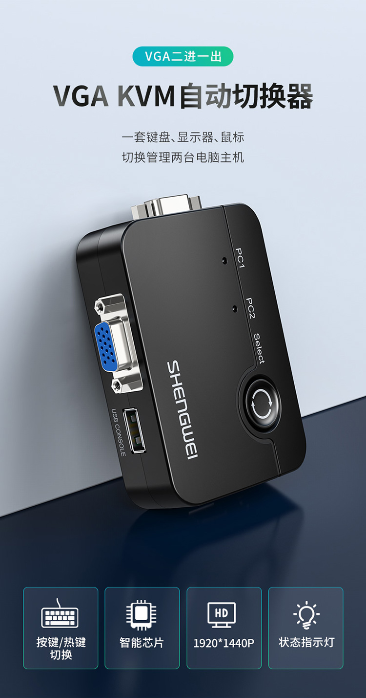KVM切換器2進(jìn)1出 勝為VGA二進(jìn)一出鍵盤鼠標(biāo)2口USB打印機(jī)共享器 DVUS102G