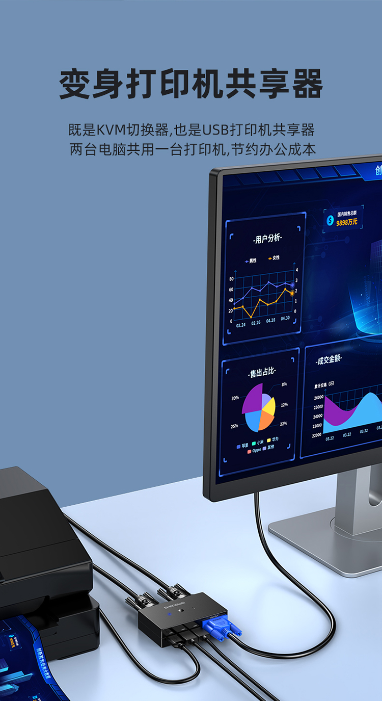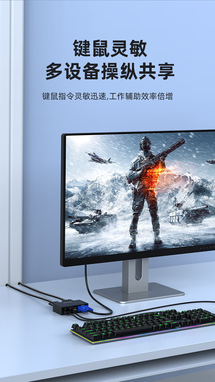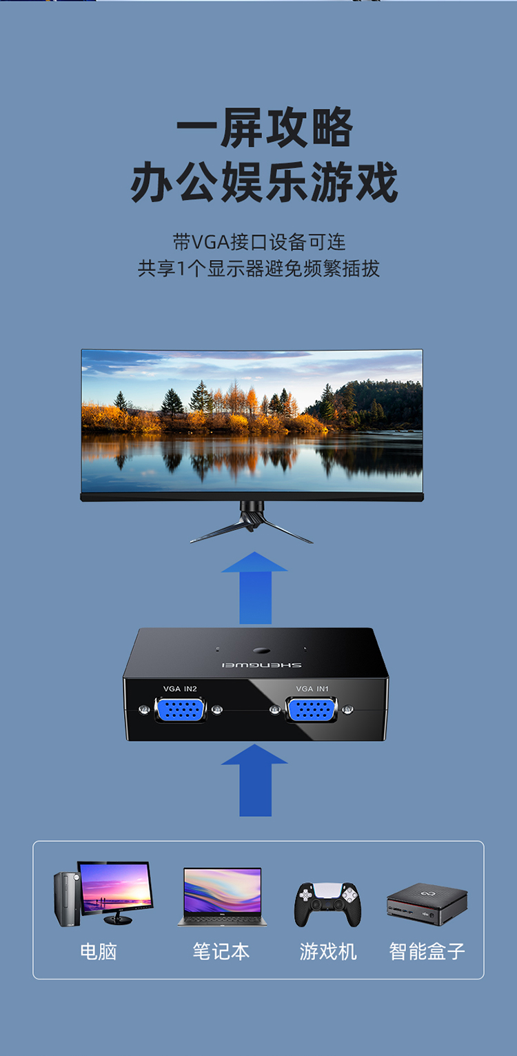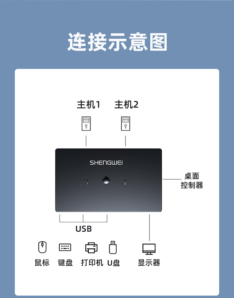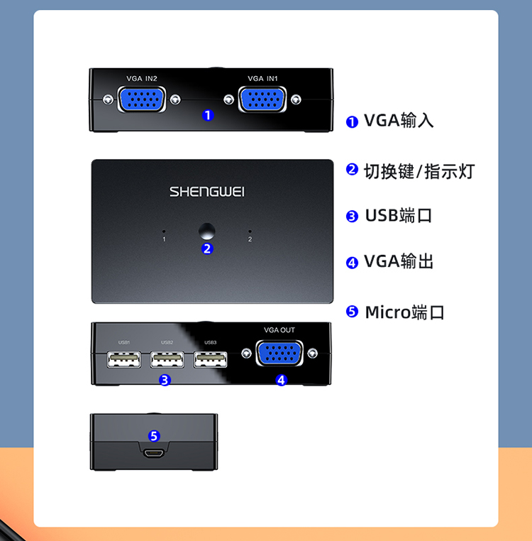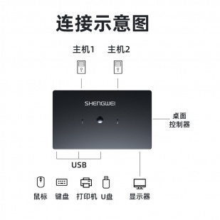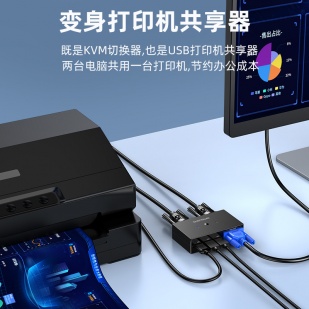 KVM切換器2進(jìn)1出VGA切屏器配線 勝為二進(jìn)一出 電腦USB打印機共享器 DVK3201K