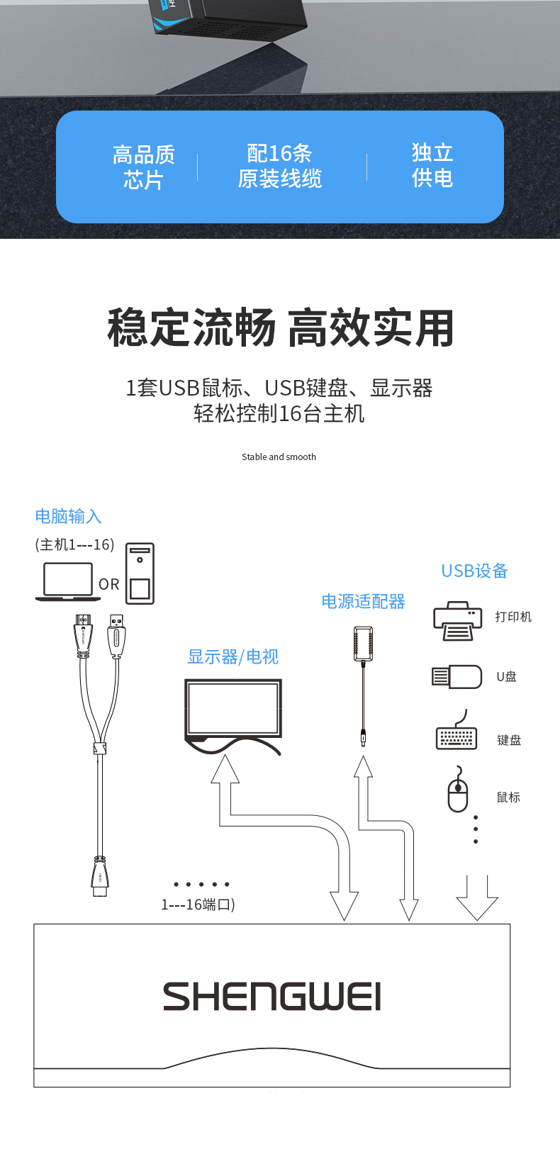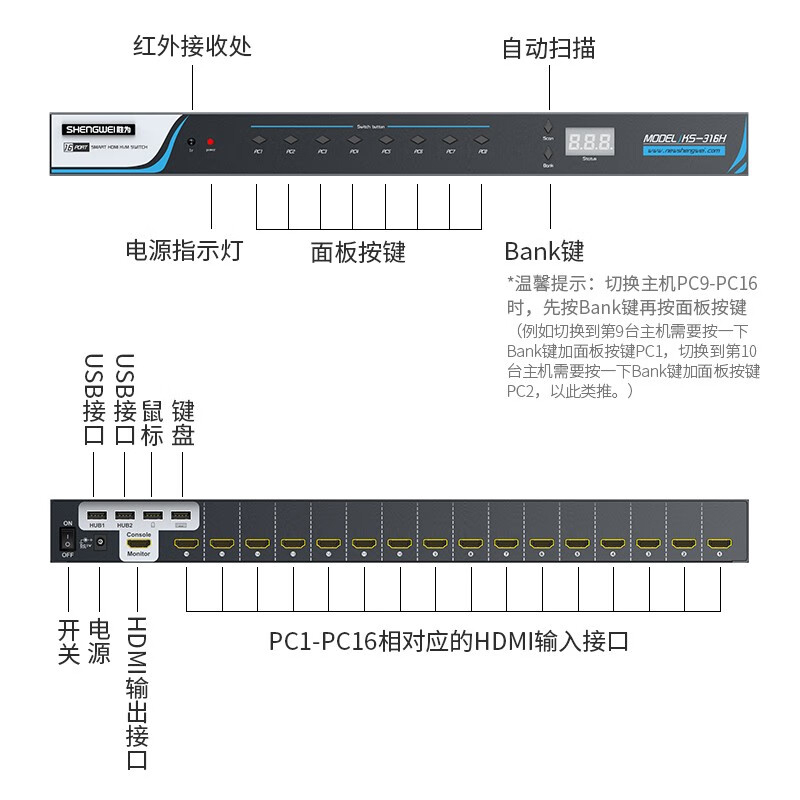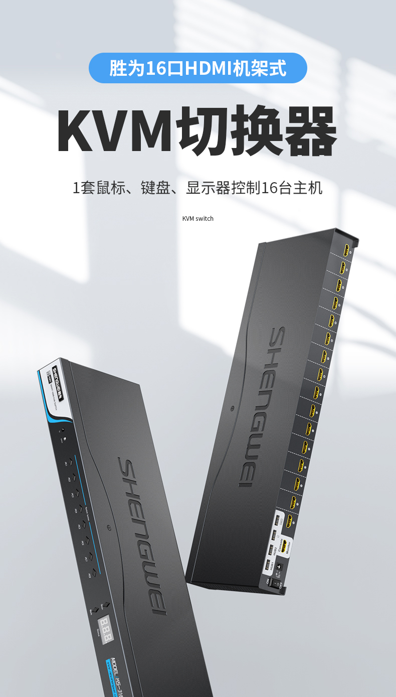 KVM切換器16口 勝為16進(jìn)1出hdmi轉(zhuǎn)換器配線帶遙控 電腦顯示器視頻打印機(jī)鍵盤鼠標(biāo)共享器 KS-316H