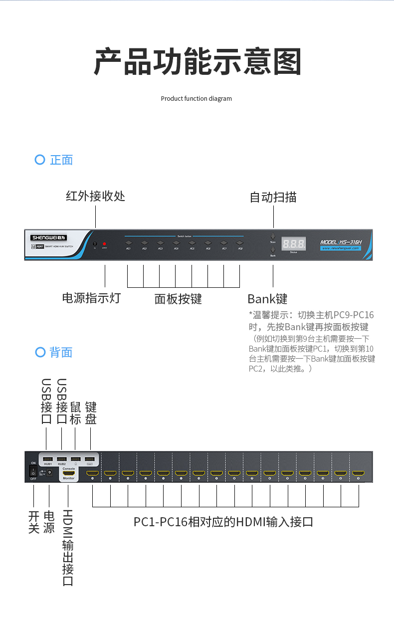 品名:勝為16進(jìn)1HDMI KVM切換器