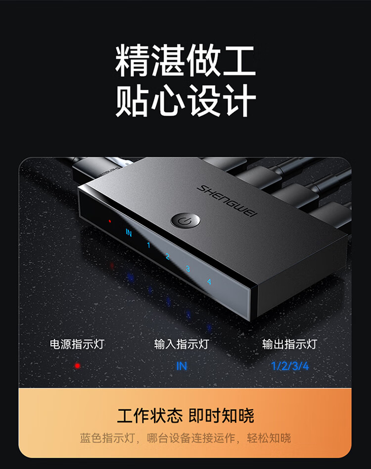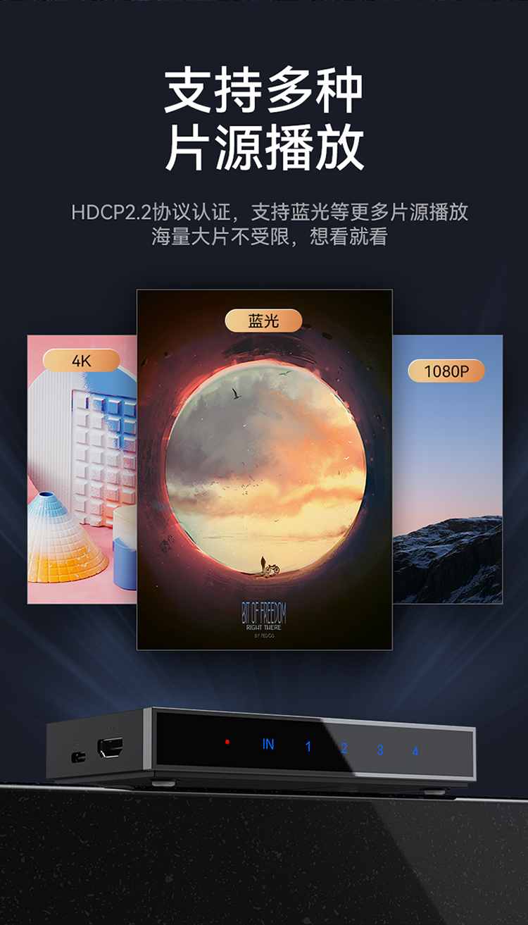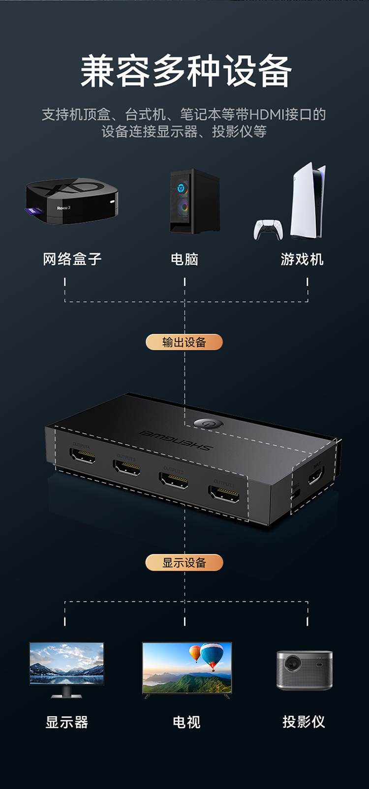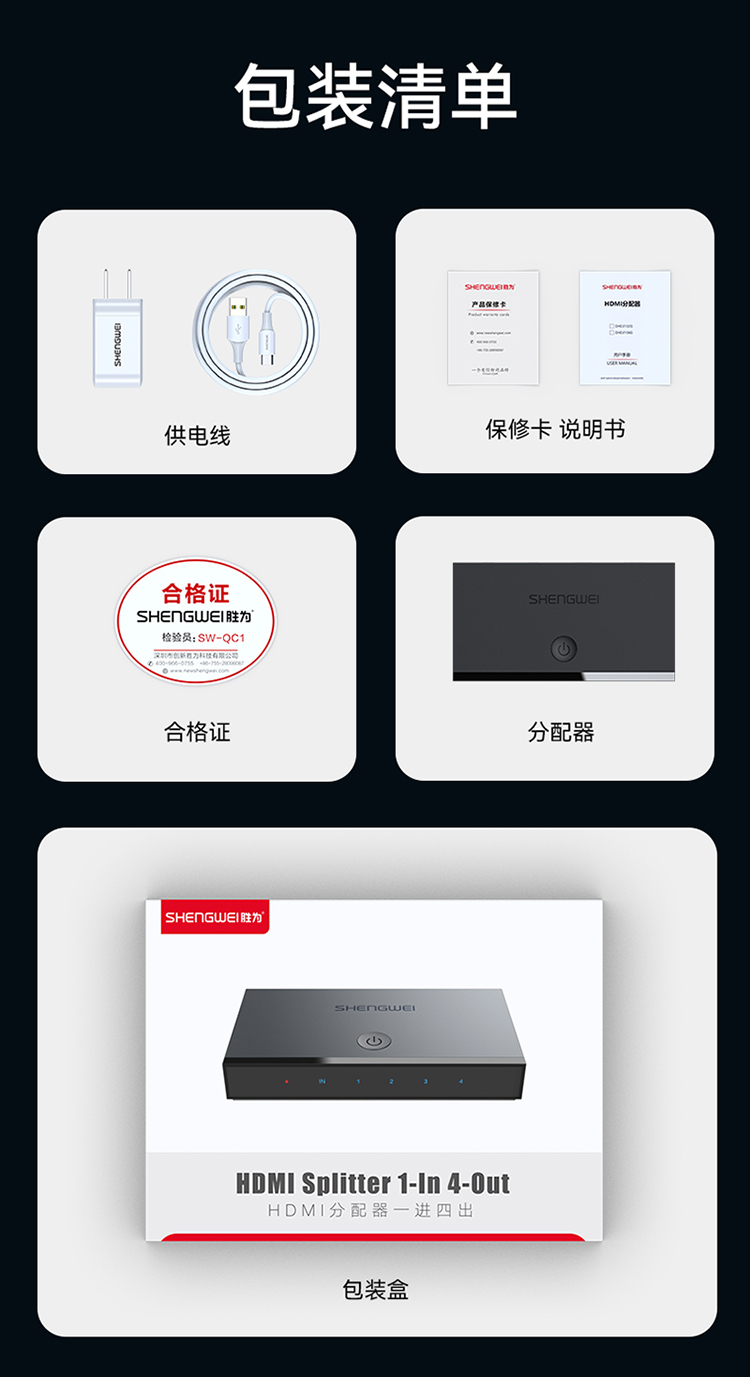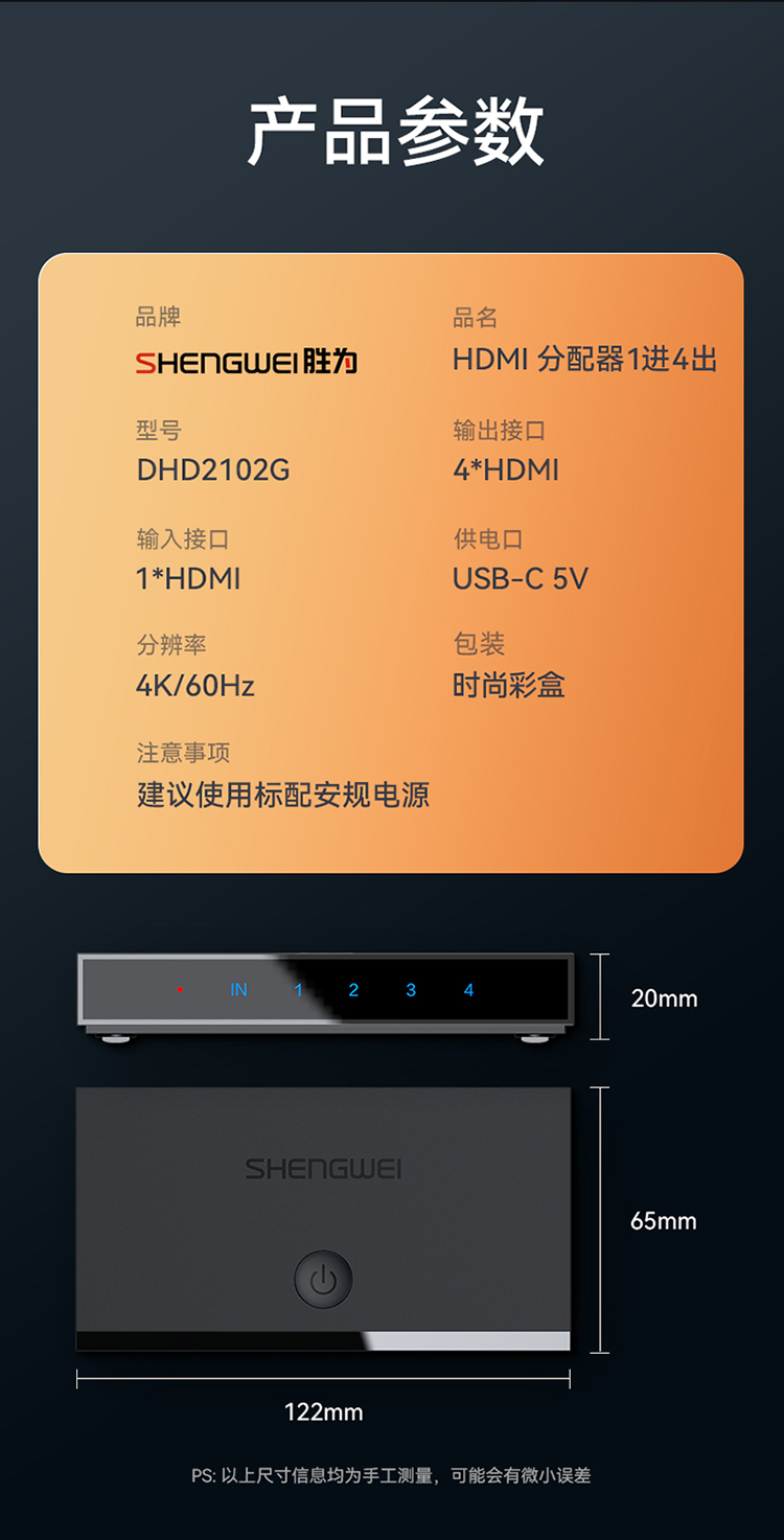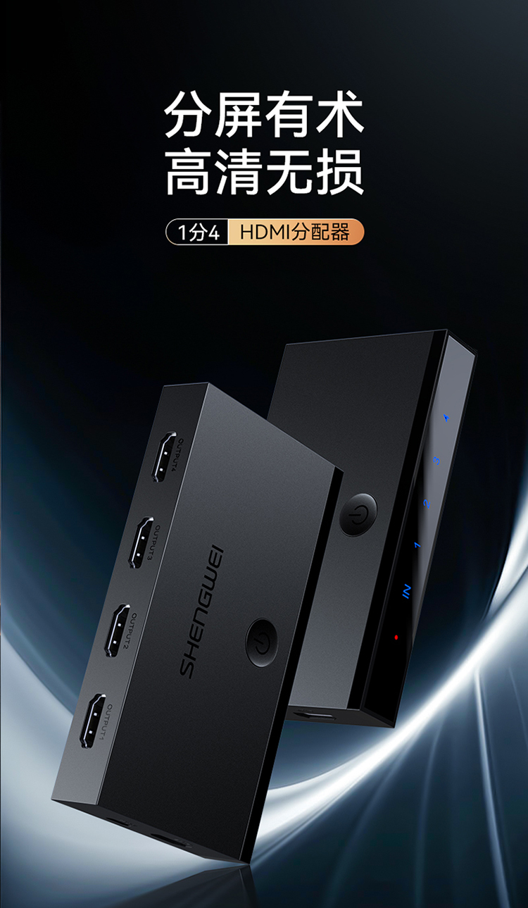 HDMI2.0分配器一進(jìn)四出 4K/60Hz高清視頻分屏器?勝為一分四 DHD2104G
