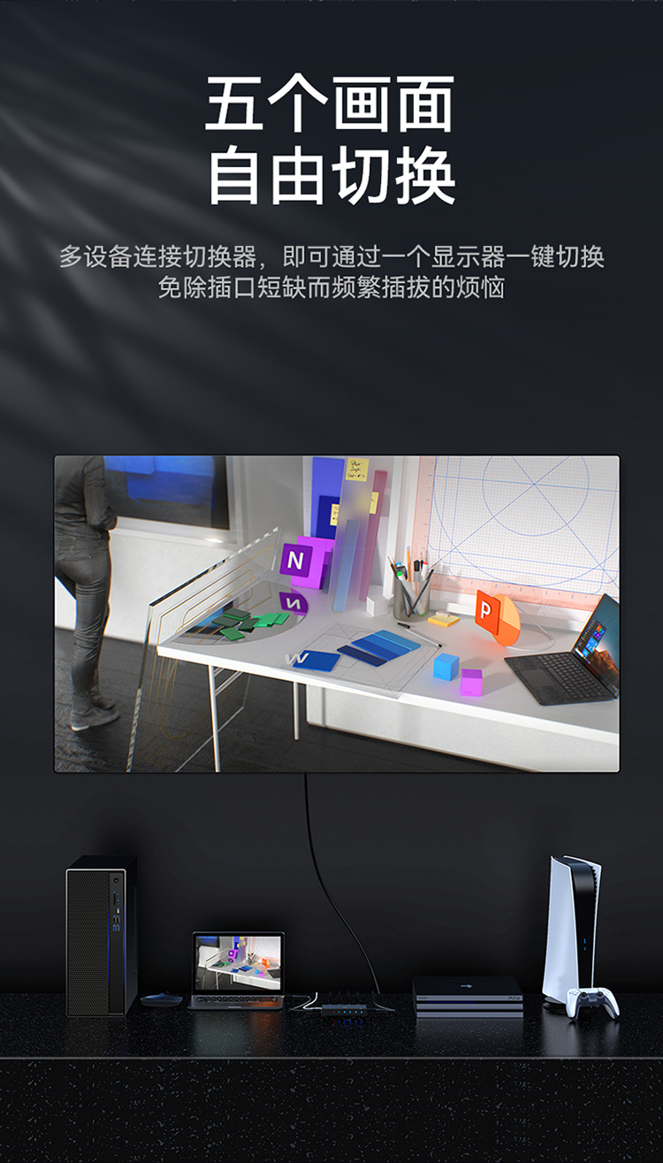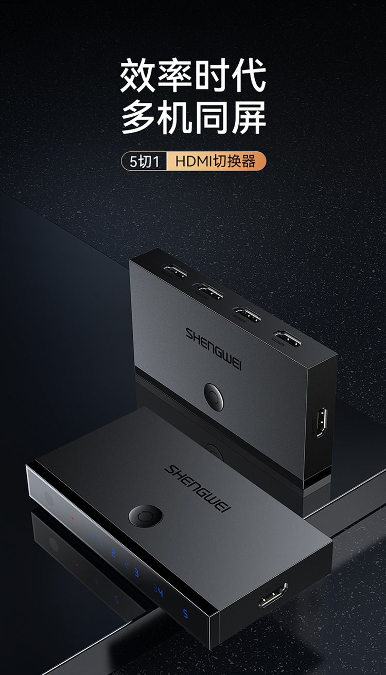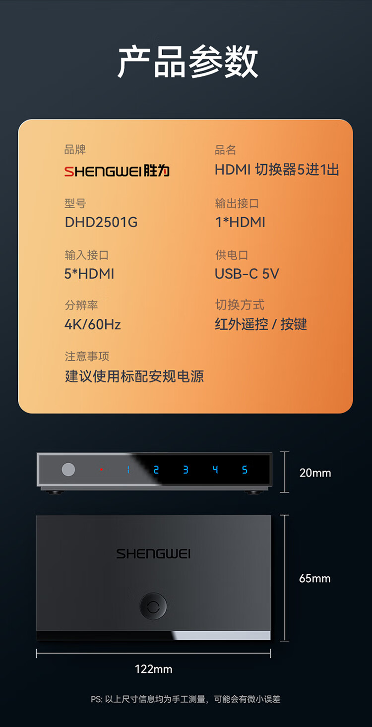 HDMI2.0切換器5進(jìn)1出 五進(jìn)一出4K/60Hz高清視頻切屏器 筆記本接電視投影儀 勝為DHD2501G