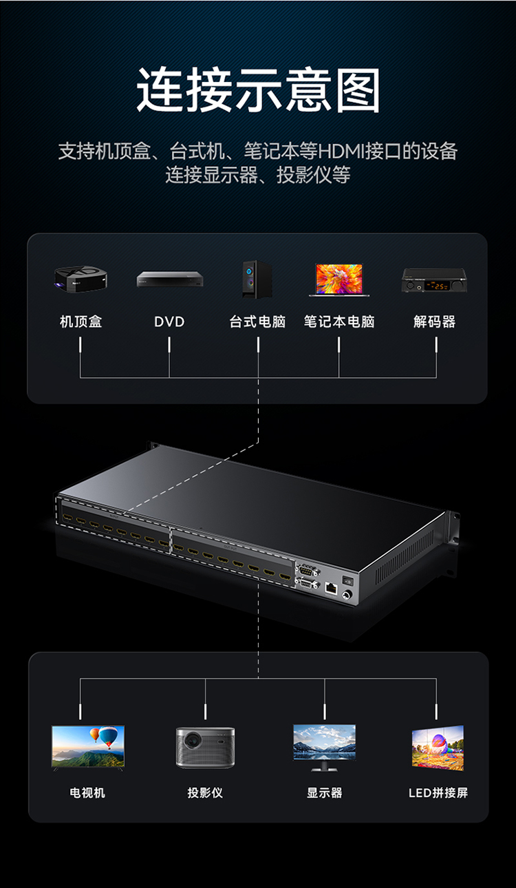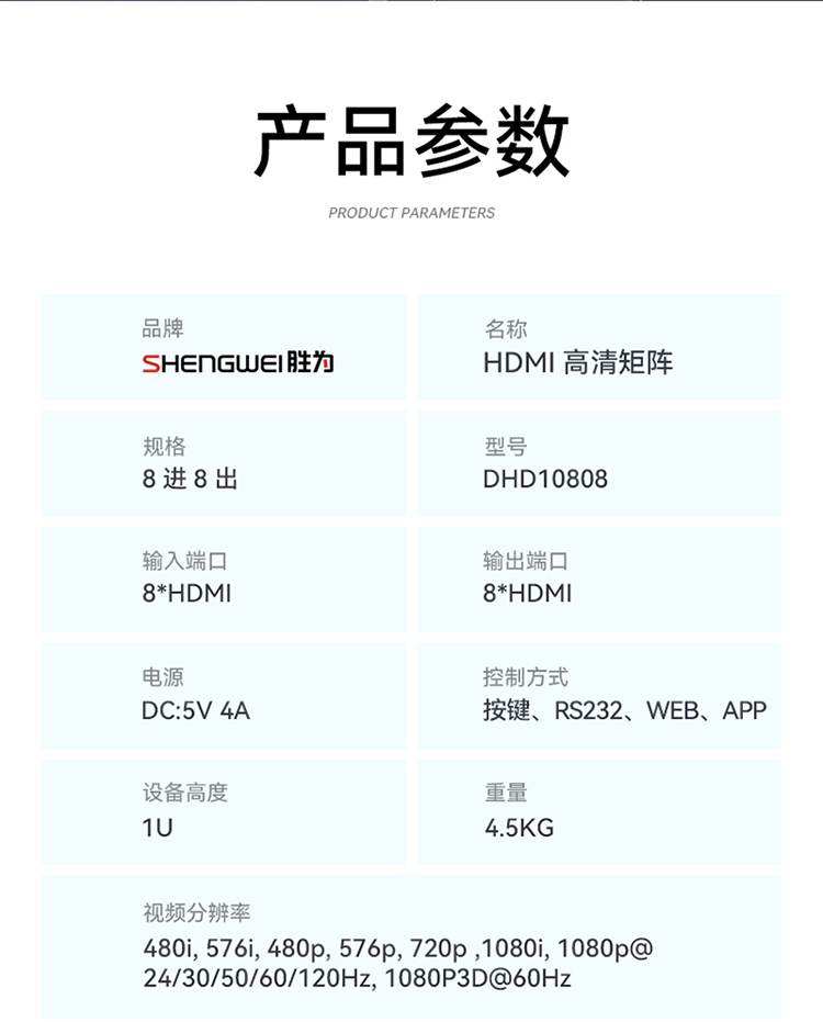 HDMI矩陣切換器8進8出 1080P音視頻同步高清會議矩陣切換器 拼接屏控制器 機架式 勝為 DHD10808