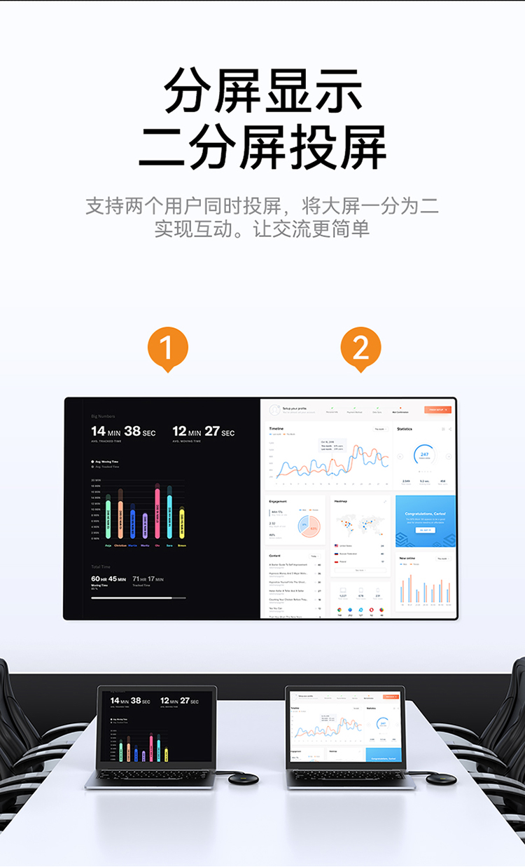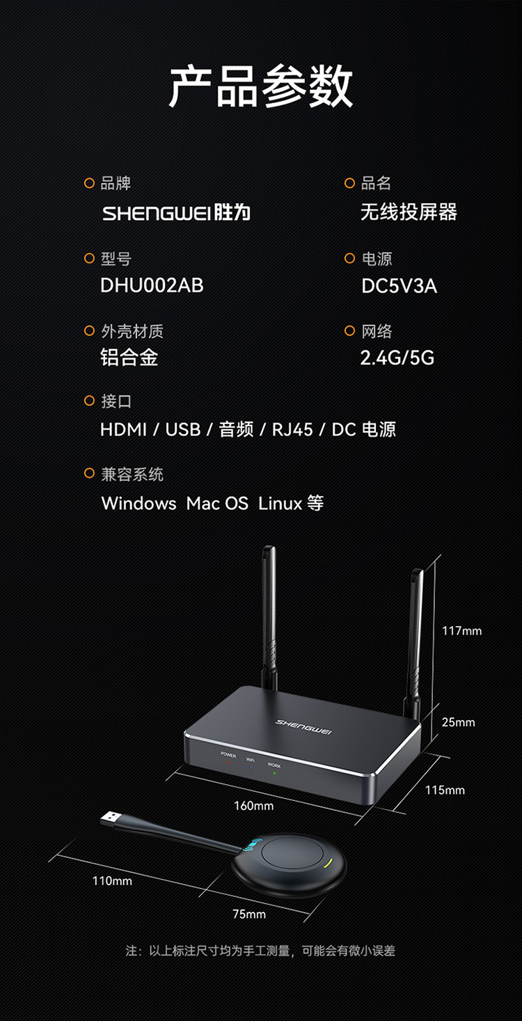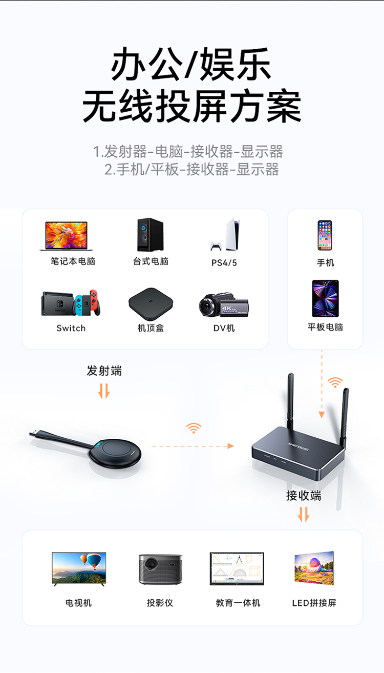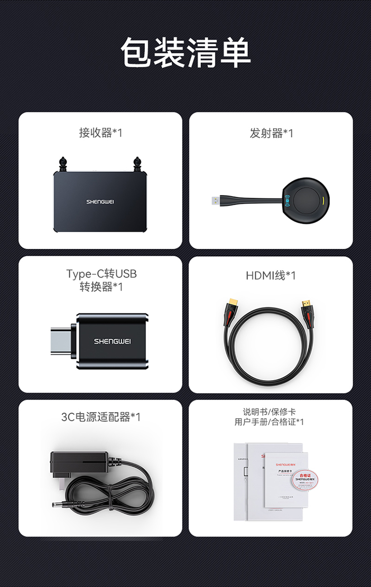 勝為無線投屏器 HDMI高清會議傳輸器 二分屏 投影儀套裝 DHU002AB