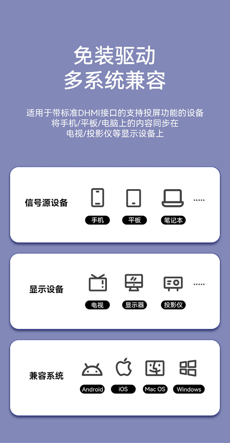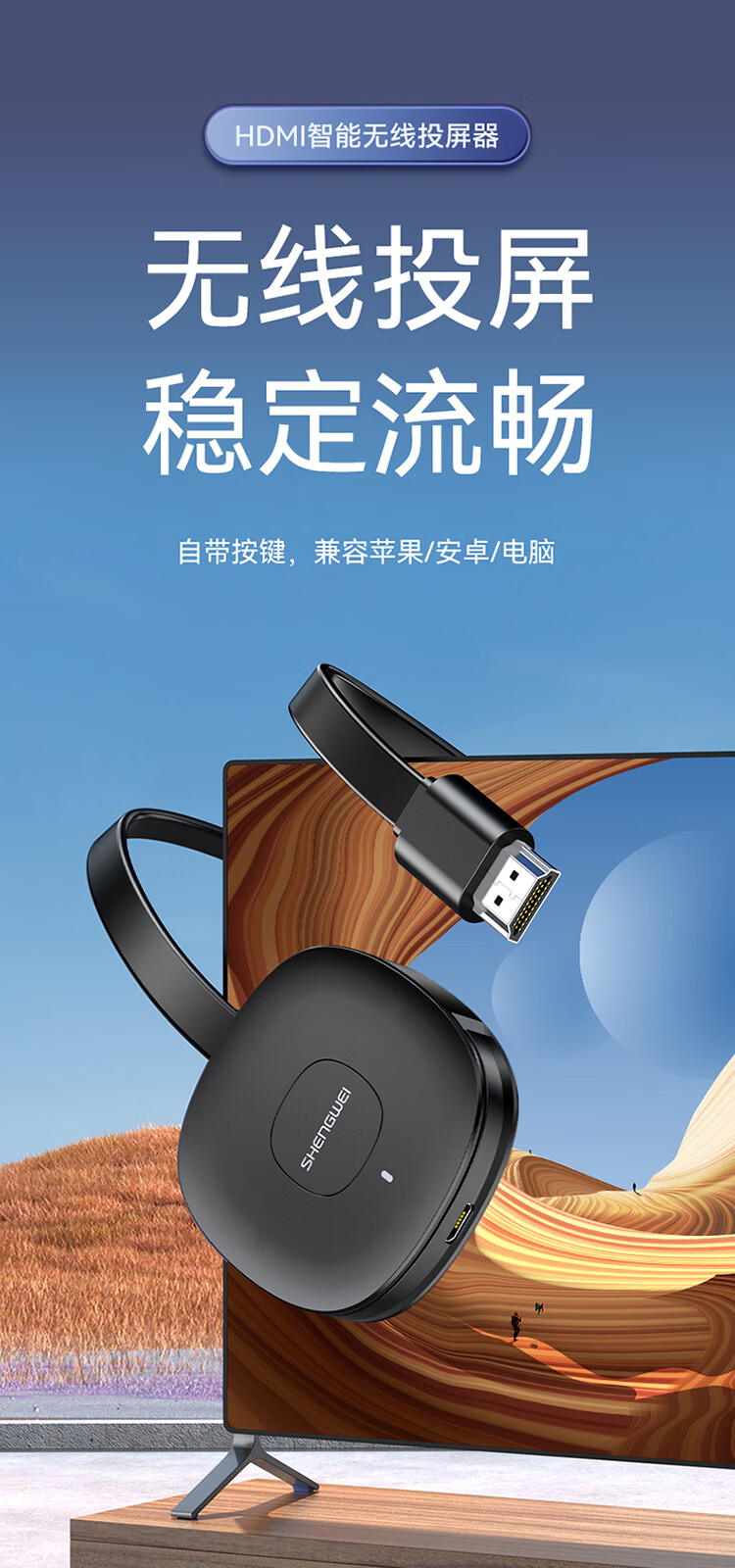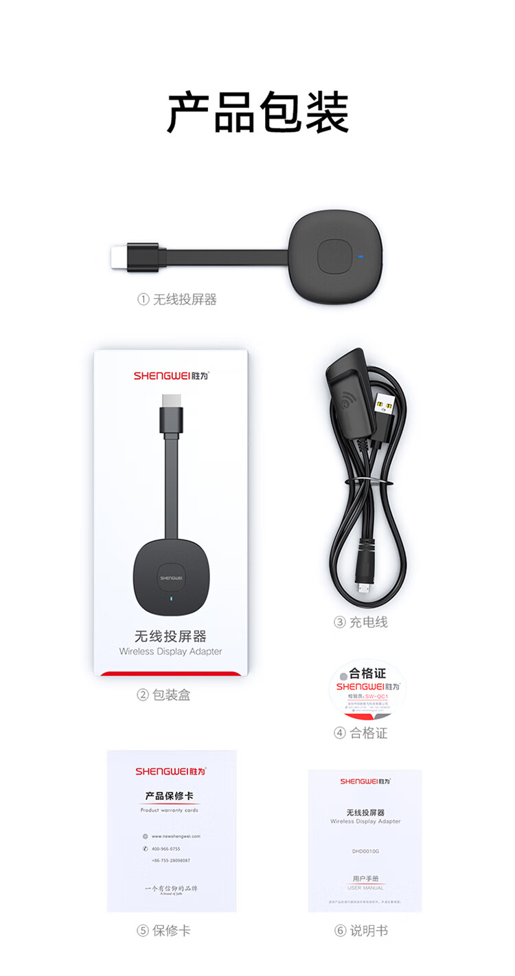 勝為 手機無線投屏器5G+2.4雙頻傳輸協(xié)議音視頻同屏器 DHD0010G