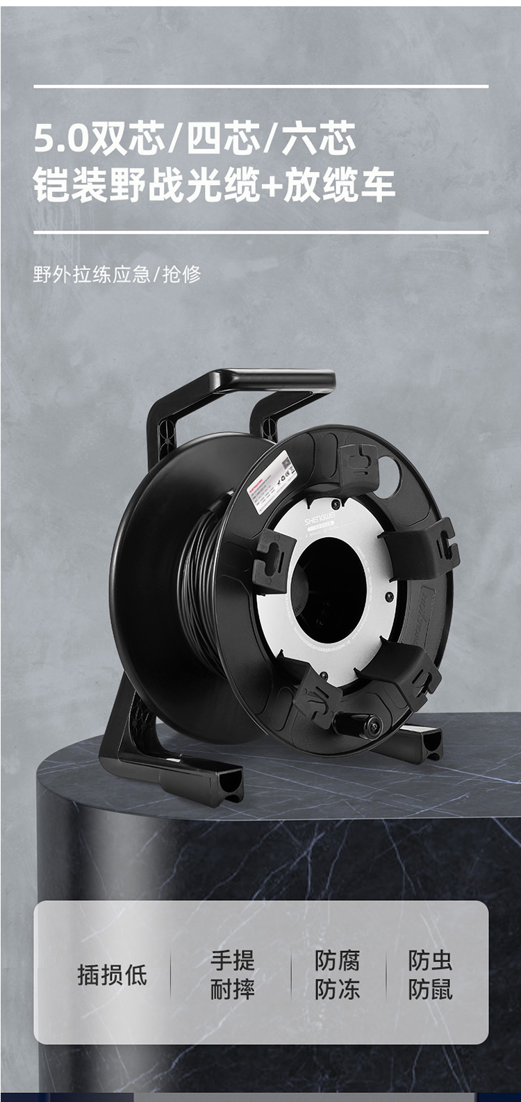 勝為四芯野戰(zhàn)鎧裝光纜 手提式