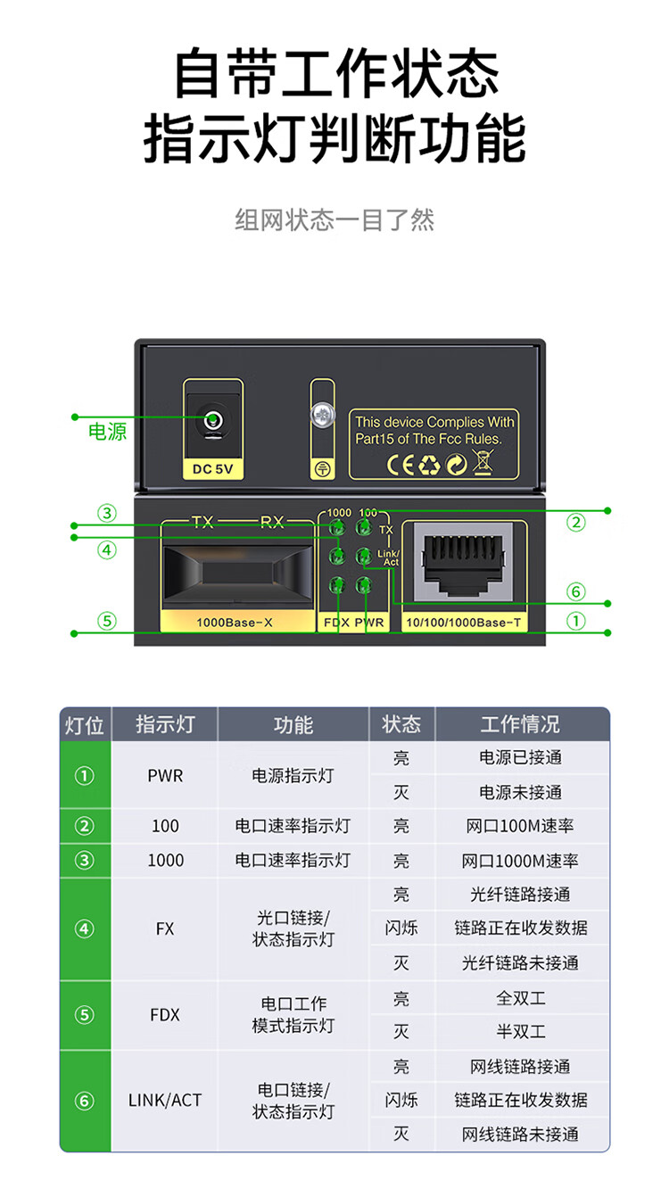 速率:光口1.25Gps;電口10/100/1000Mbps