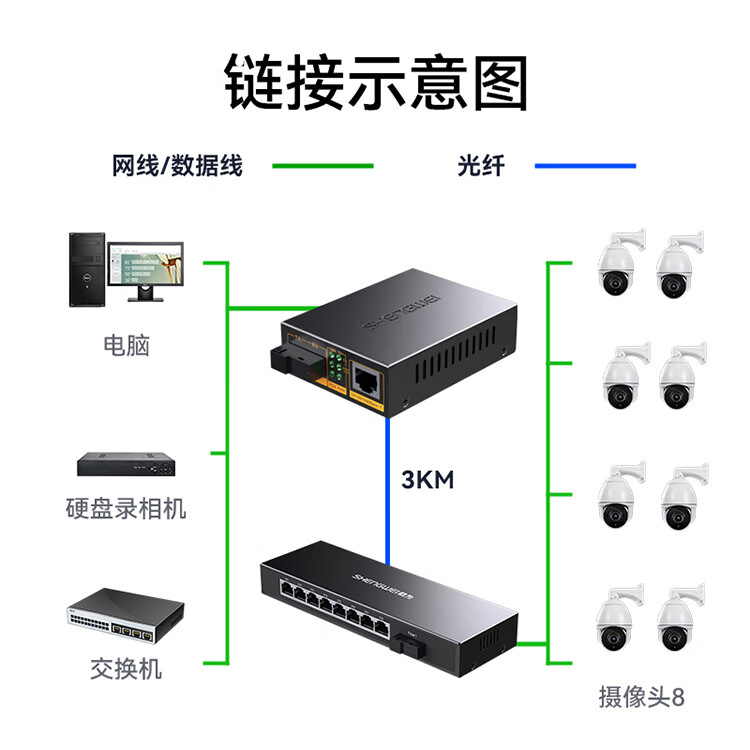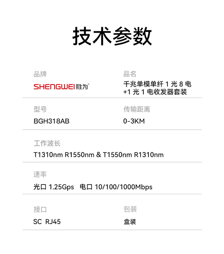 千兆1光8電單模單纖 一對裝 勝為SC光纖收發(fā)器 3Km BGH318AB