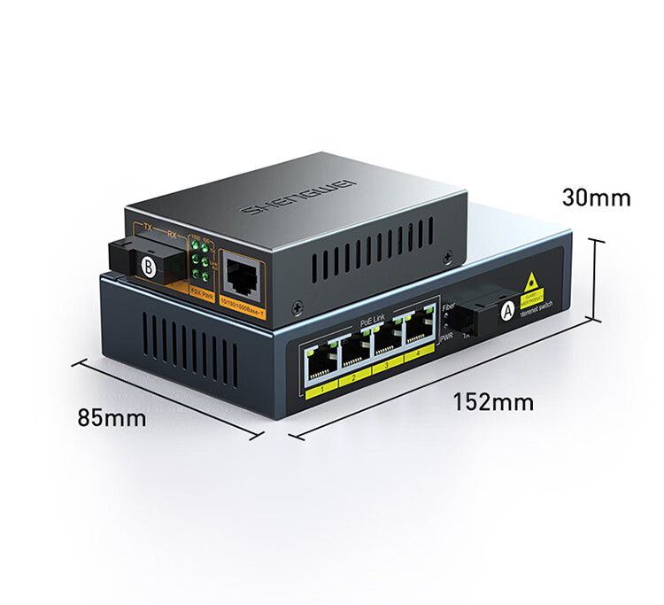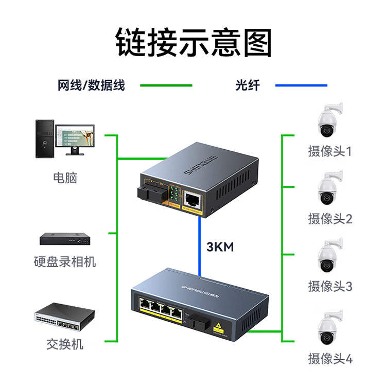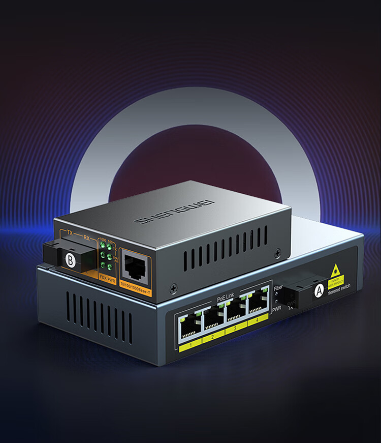 1光4電單模單纖一對裝 POE千兆勝為SC光纖收發(fā)器 3Km BGH314P2