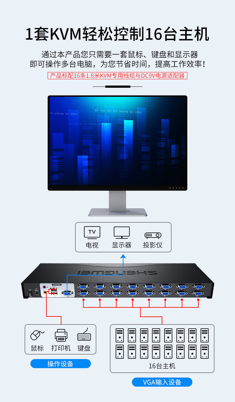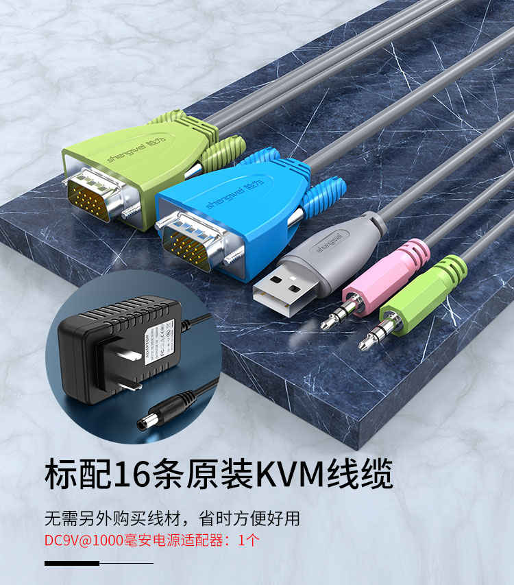 KVM自動切換器USB鍵盤鼠標 勝為16口配線機架型帶音頻十六進一出VGA多電腦切換共享器 KS-1161UA