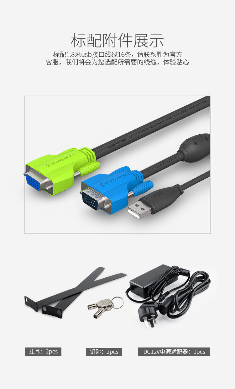 KVM切換器16口 帶17英寸LCD顯示器配VGA線 16進1出 KS-1716LCD