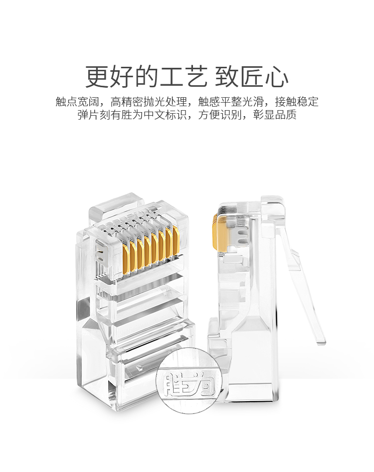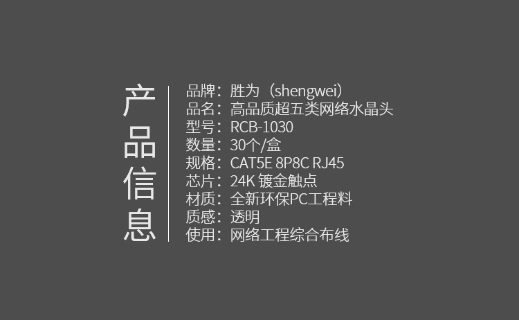 超五類鍍金水晶頭 30個(gè)/盒 RJ45純銅網(wǎng)線接頭 勝為cat5e非屏蔽 RCB-1030