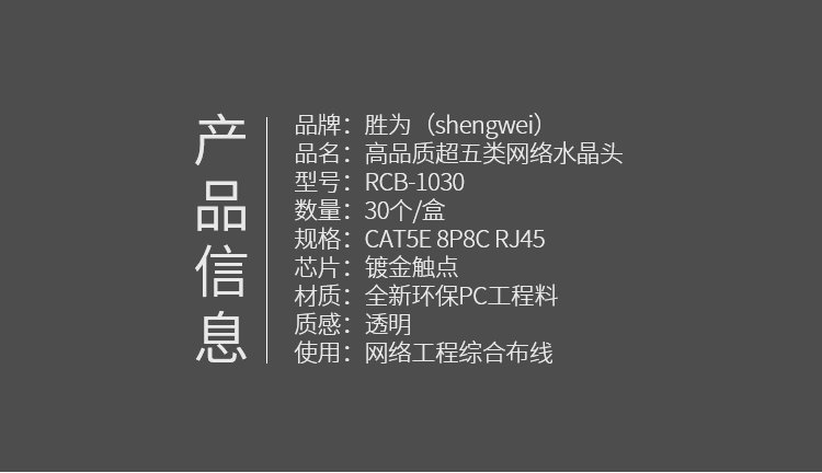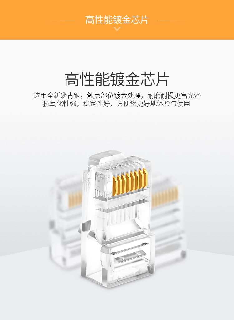 超五類(lèi)水晶頭 100個(gè)/盒 勝為鍍金RJ45純銅網(wǎng)絡(luò)網(wǎng)線(xiàn)接頭 cat5e非屏蔽 RCB-1100