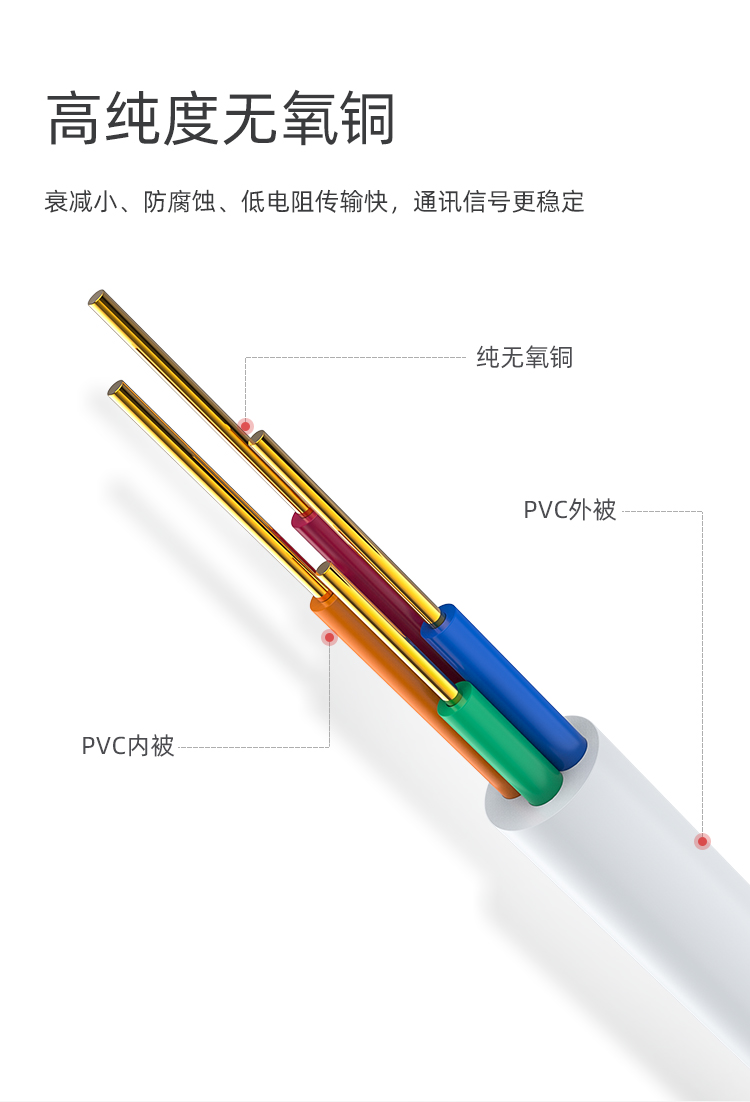 電話線4芯單股無氧銅 勝為0.4mm座機/傳真機電話線100米 TEC-2100