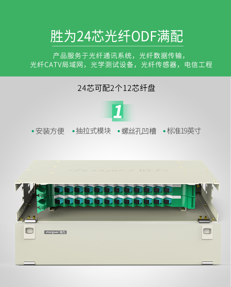 勝為24芯LC多模滿配ODF光纖配線架 標(biāo)準(zhǔn)19英寸機(jī)架式1.2mm冷軋板 ODF-1024L-M