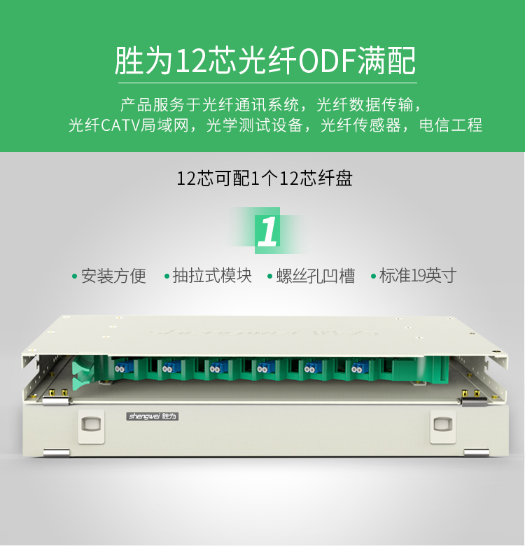 勝為12芯ODF光纖配線(xiàn)架 FC多模萬(wàn)兆OM3滿(mǎn)配 19英寸抽拉機(jī)架式1.2mm冷軋板 ODF-1012F-O