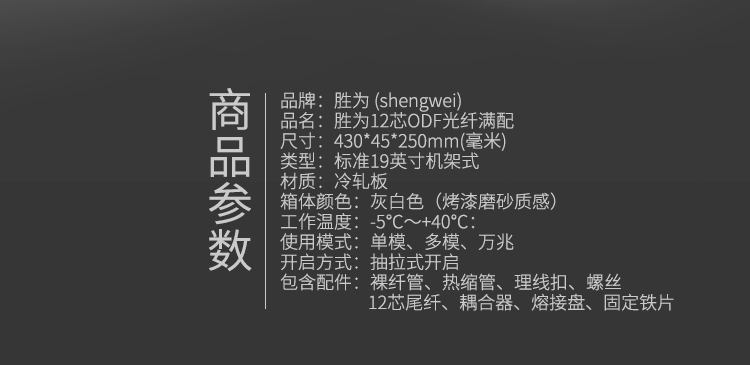 包含配件:裸纖管、熱縮管、理線(xiàn)扣、螺絲、12芯尾纖、耦合器、熔纖盤(pán)、固定鐵片