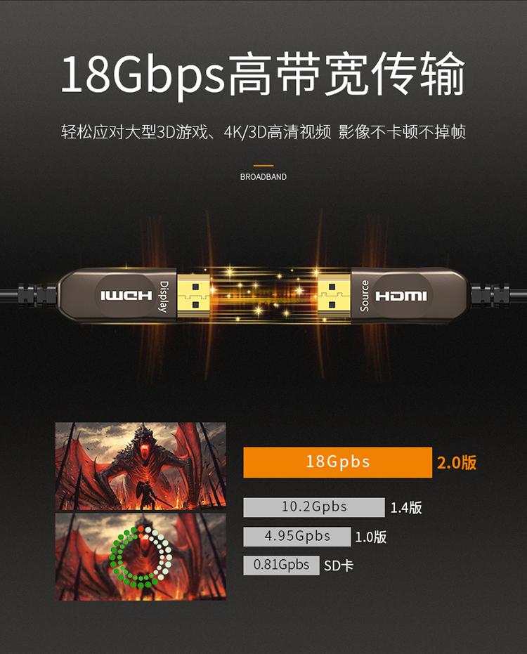 勝為光纖HDMI線2.0版 4K高清線發(fā)燒工程級 光纖HDMI線 FHC-1010