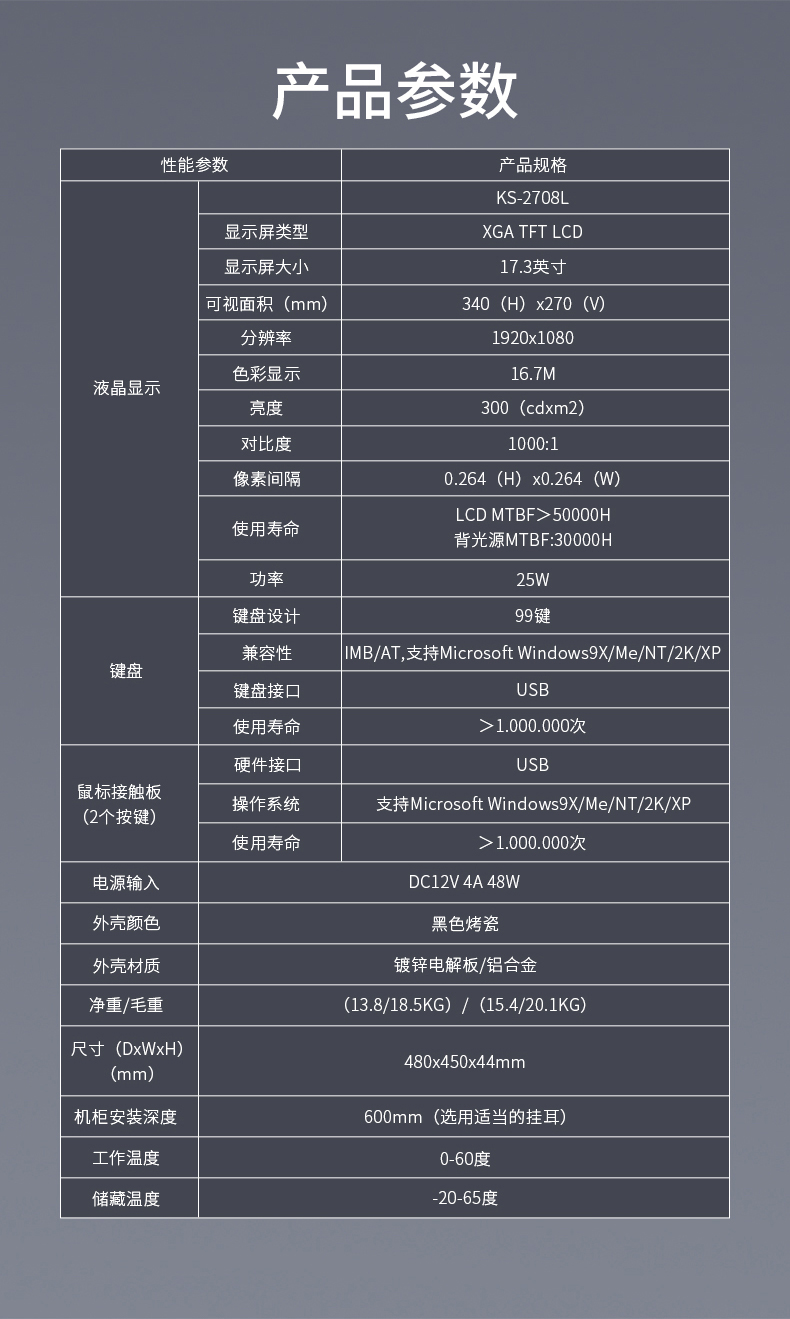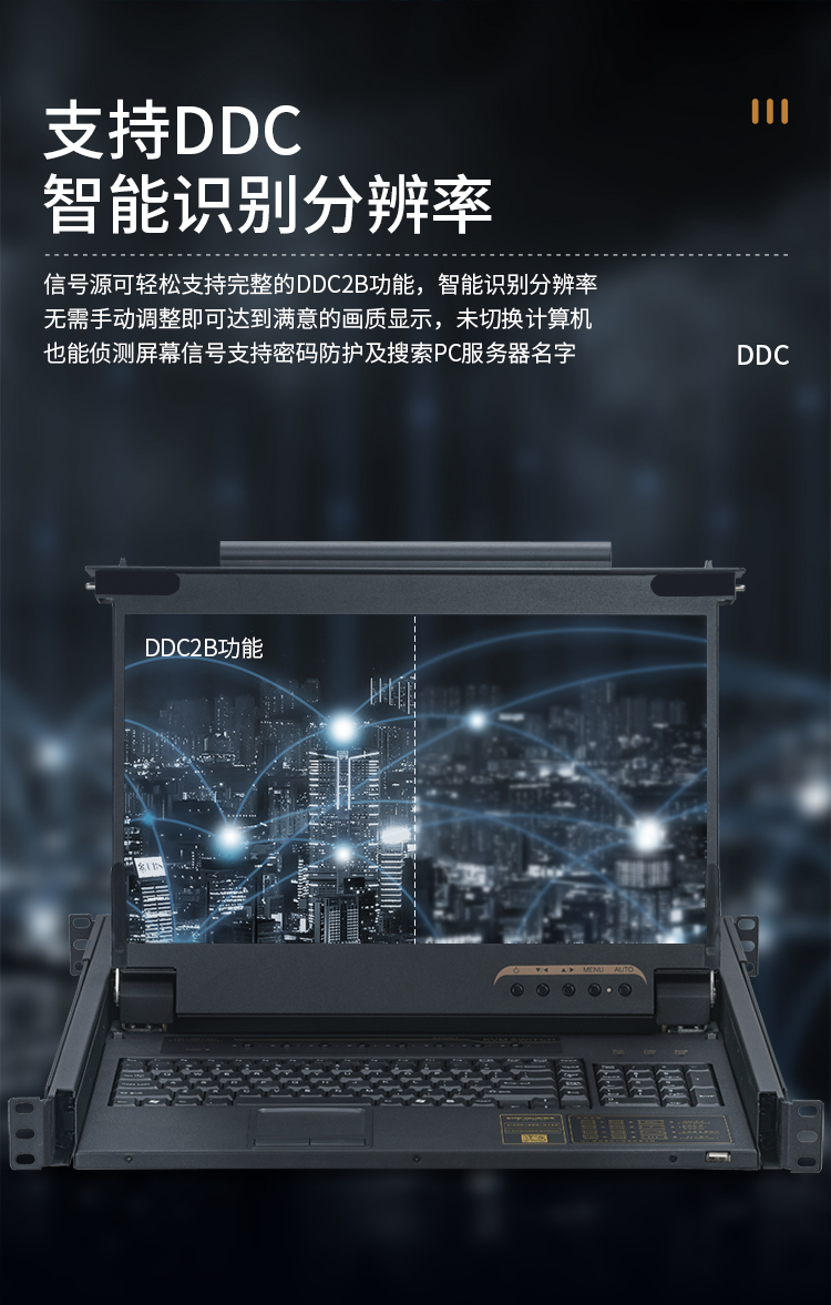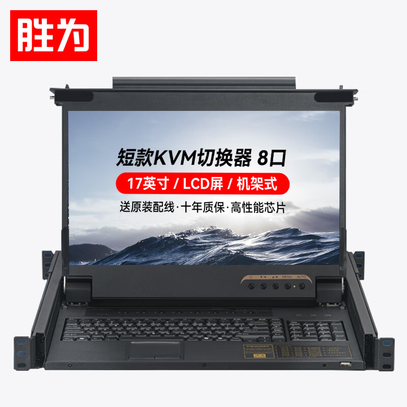 數(shù)字KVM切換器8口 17.3英寸高清寬屏LCD顯示器配VGA線 8進(jìn)一出機(jī)架式電腦轉(zhuǎn)換器 KS-2708L